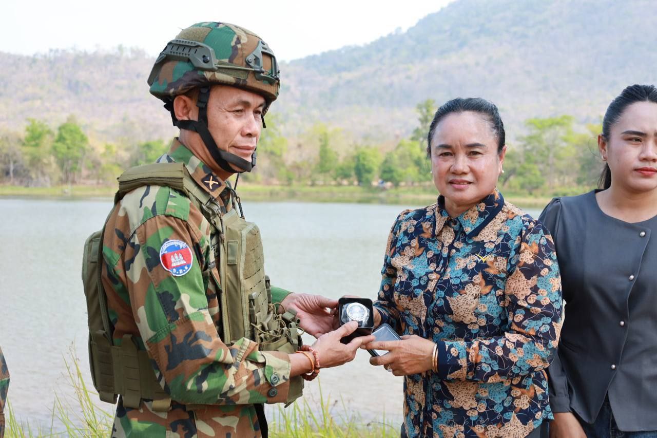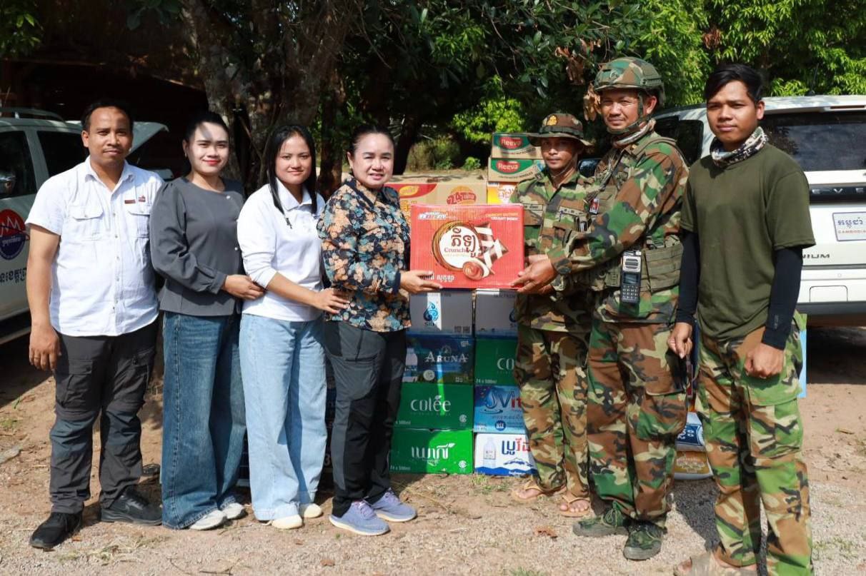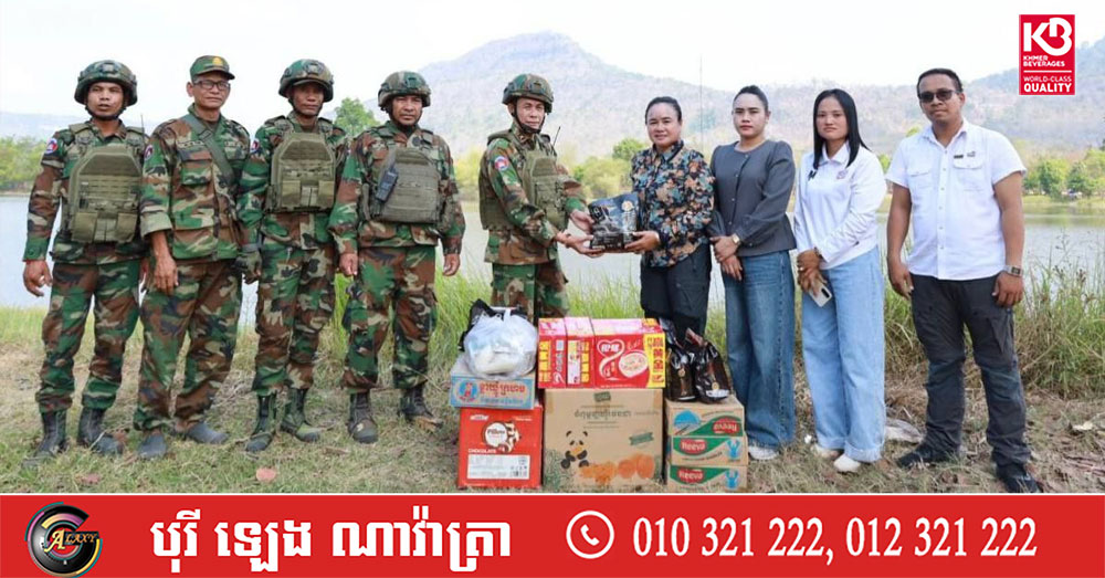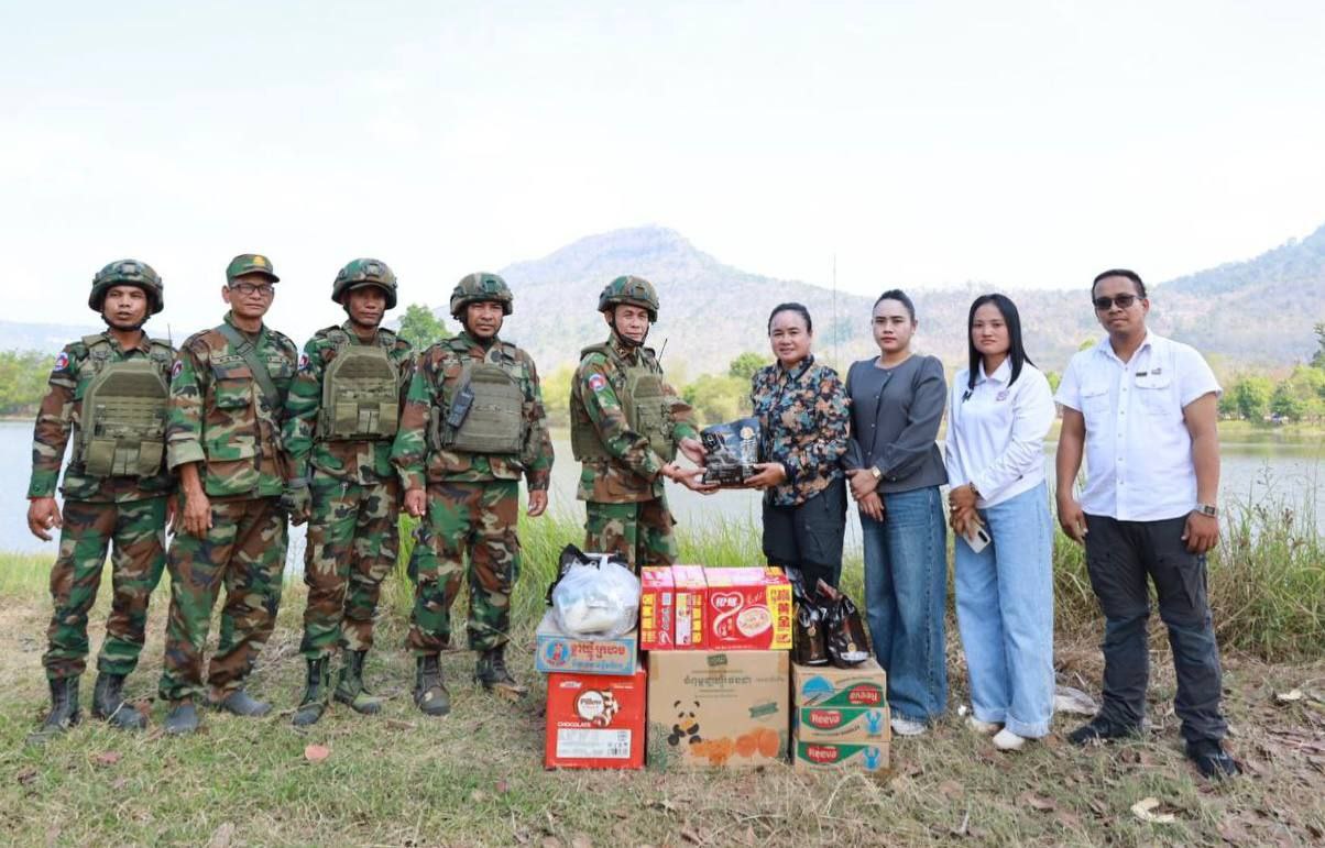 (ព្រះវិហារ)៖ លោកស្រី ហែម សុគុណពិសី ប្រធានមន្ទីរព័ត៌មានខេត្តព្រះវិហារ នៅព្រឹកថ្ងៃទី៣ ខែមីនា ឆ្នាំ២០២៦ បានដឹកនាំក្រុមការងារ ចុះសួរសុខទុក្ខ និងនាំយកអំណោយជាសម្ភារប្រើប្រាស់ និងគ្រឿងឧបភោគបរិភោគ មកប្រគល់ជូនវីរៈកងទ័ពជួរមុខ ដែលកំពុងឈរជើងយ៉ាងអង់អាចក្លាហាន ការពារបូរណភាពទឹកដី តាមខ្សែបន្ទាត់ព្រំដែនកម្ពុជា-ថៃ ក្នុងភូមិសាស្ត្រខេត្តព្រះវិហារ។