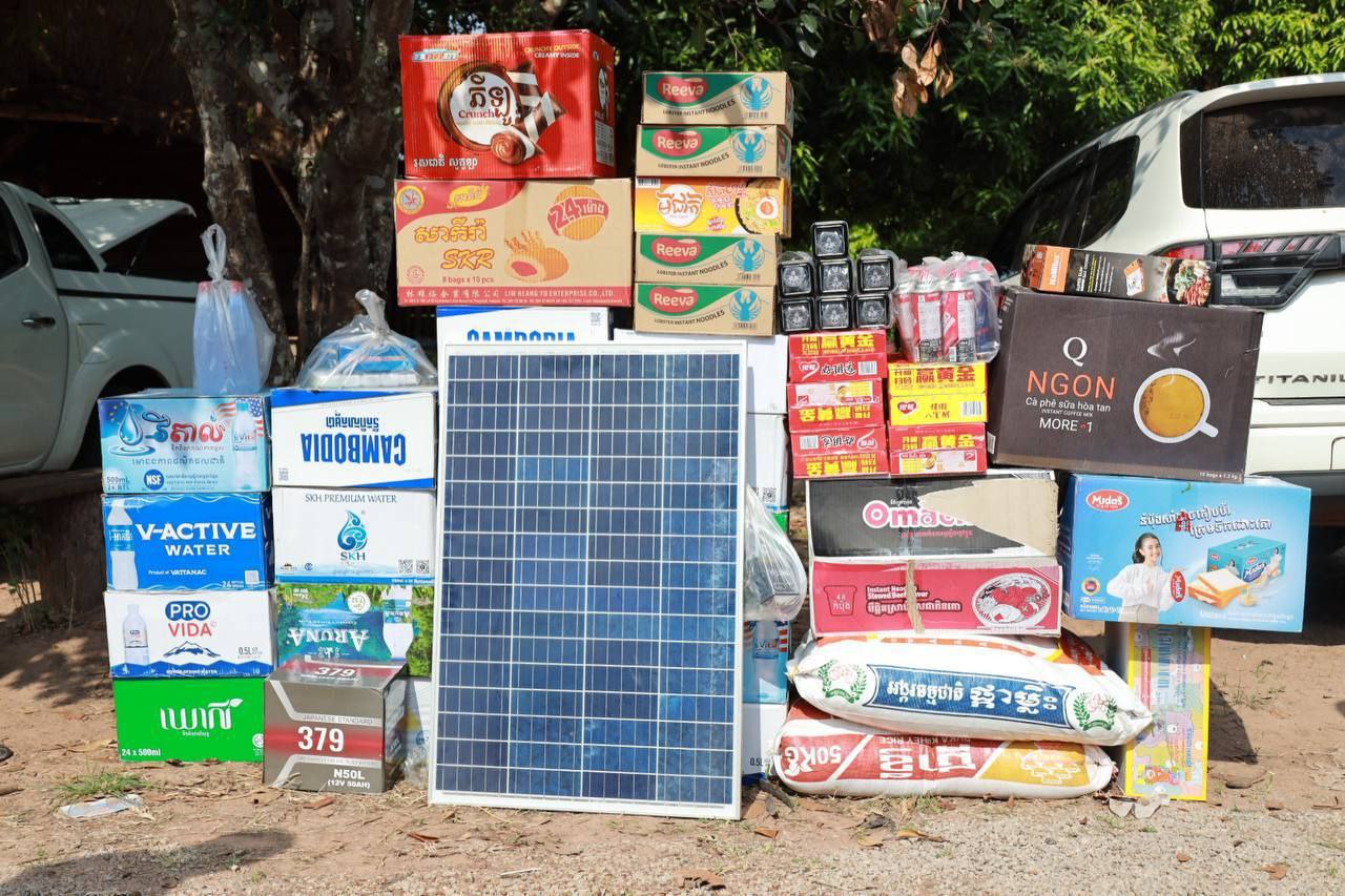 សូមបញ្ជាក់ថា អំណោយដែលបាននាំយកទៅប្រគល់ជូននាពេលនេះរួមមាន៖ បន្ទះសូឡាអាគុយចំនួន ១ឈុត ចង្ក្រាន និងកំប៉ុងហ្គាស គ្រឿងឧបភោគបរិភោគ និងនំណែកមួយចំនួន ដែលជាការចូលរួមវិភាគទាន ពីលោកស្រីប្រធានមន្ទីរផ្ទាល់ រួមជាមួយលោកស្រី ធន សយនារីរត្នន៍ ទីប្រឹក្សាក្រសួងព័ត៌មាន។