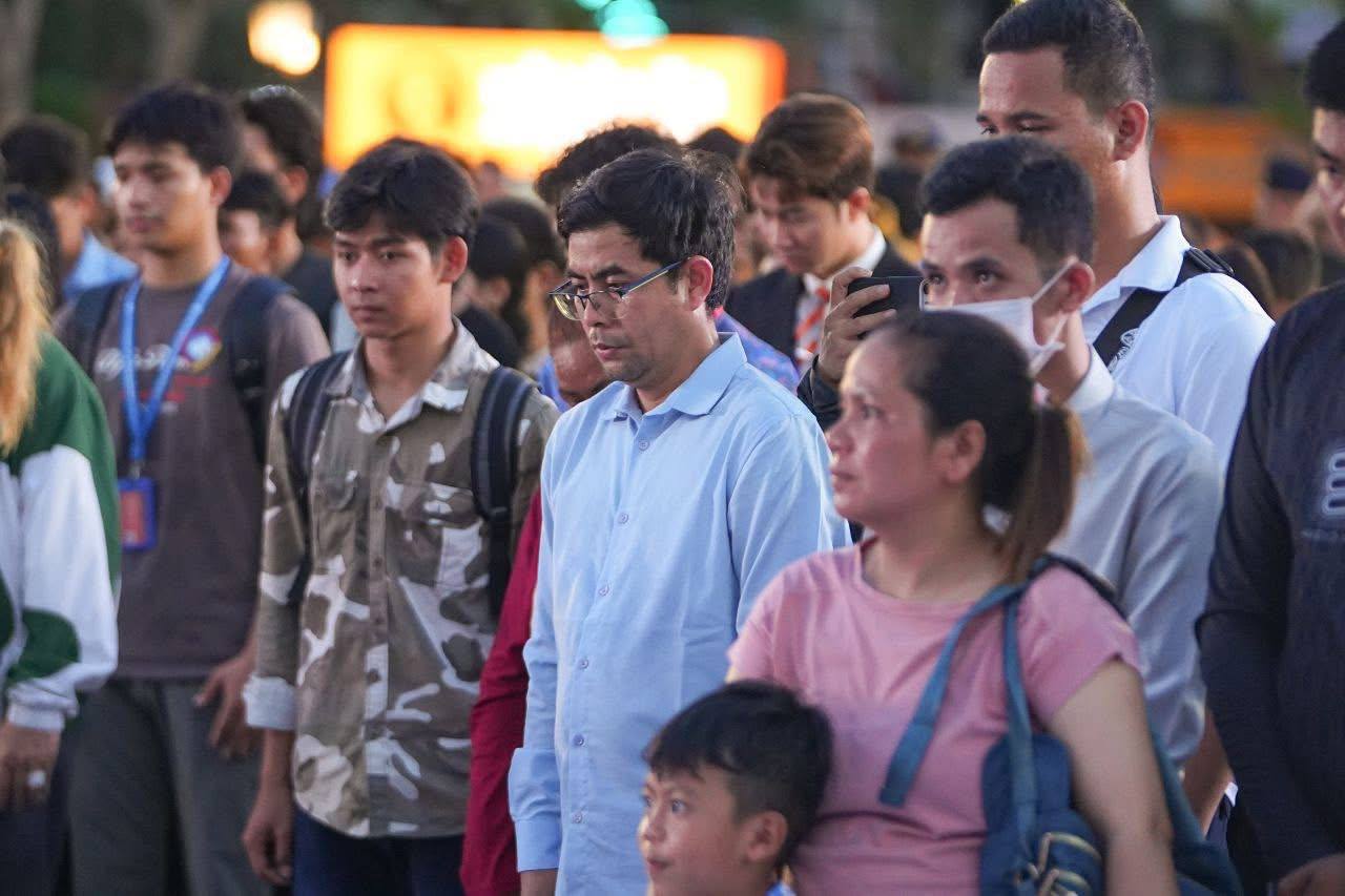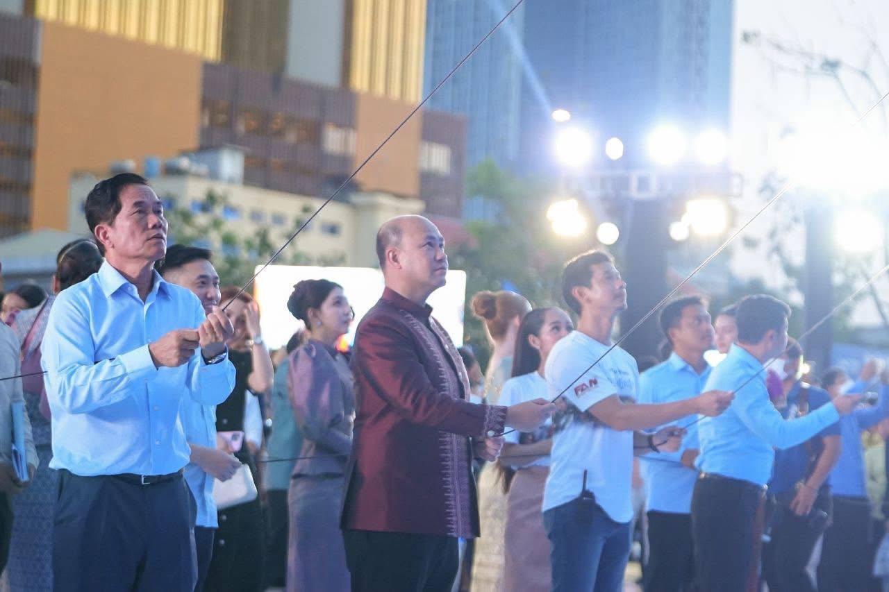 (ភ្នំពេញ)៖ លោក ហ៊ុន ម៉ានី ឧបនាយករដ្ឋមន្ត្រី និងជាប្រធានសហភាពសហព័ន្ធយុវជនកម្ពុជា (ស.ស.យ.ក.) នៅល្ងាចថ្ងៃទី៣ ខែមីនា ឆ្នាំ២០២៦នេះ បានអញ្ជើញជាអធិបតីសម្ពោធផ្ទាំងគំនូរ «សិល្បៈដើម្បីសន្តិភាព» នៅបរិវេណសួនច្បារមុខវត្តបុទុមវត្តី រាជធានីភ្នំពេញ។