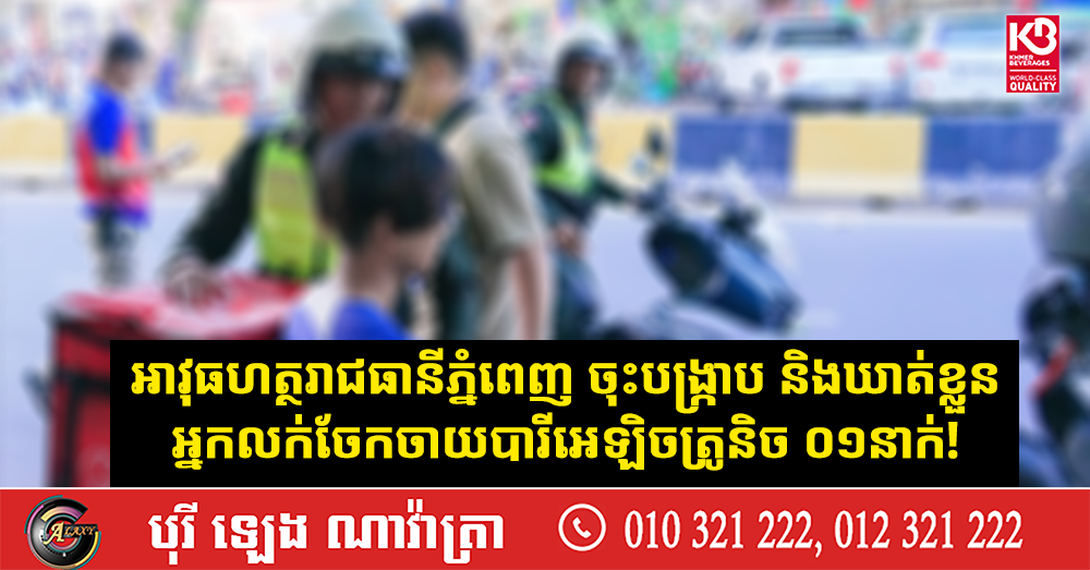 កម្លាំងអាវុធហត្ថរាជធានីភ្នំពេញ ចាប់ខ្លួនអ្នកចែកចាយបារីអេឡិចត្រូនិចម្នាក់ ដែលលក់ចល័តដូចអ្នកដឹកទំនិញអនឡាញ
