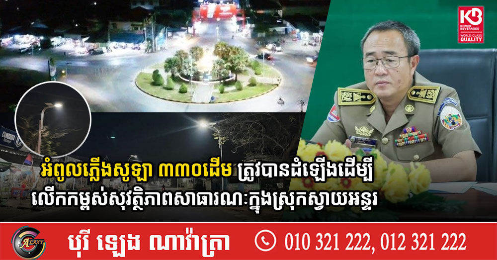 អំពូលភ្លើងសូឡា ៣៣០ដើម ត្រូវបានដំឡើងដើម្បីលើកកម្ពស់សុវត្ថិភាពសាធារណៈក្នុងស្រុកស្វាយអន្ទរ