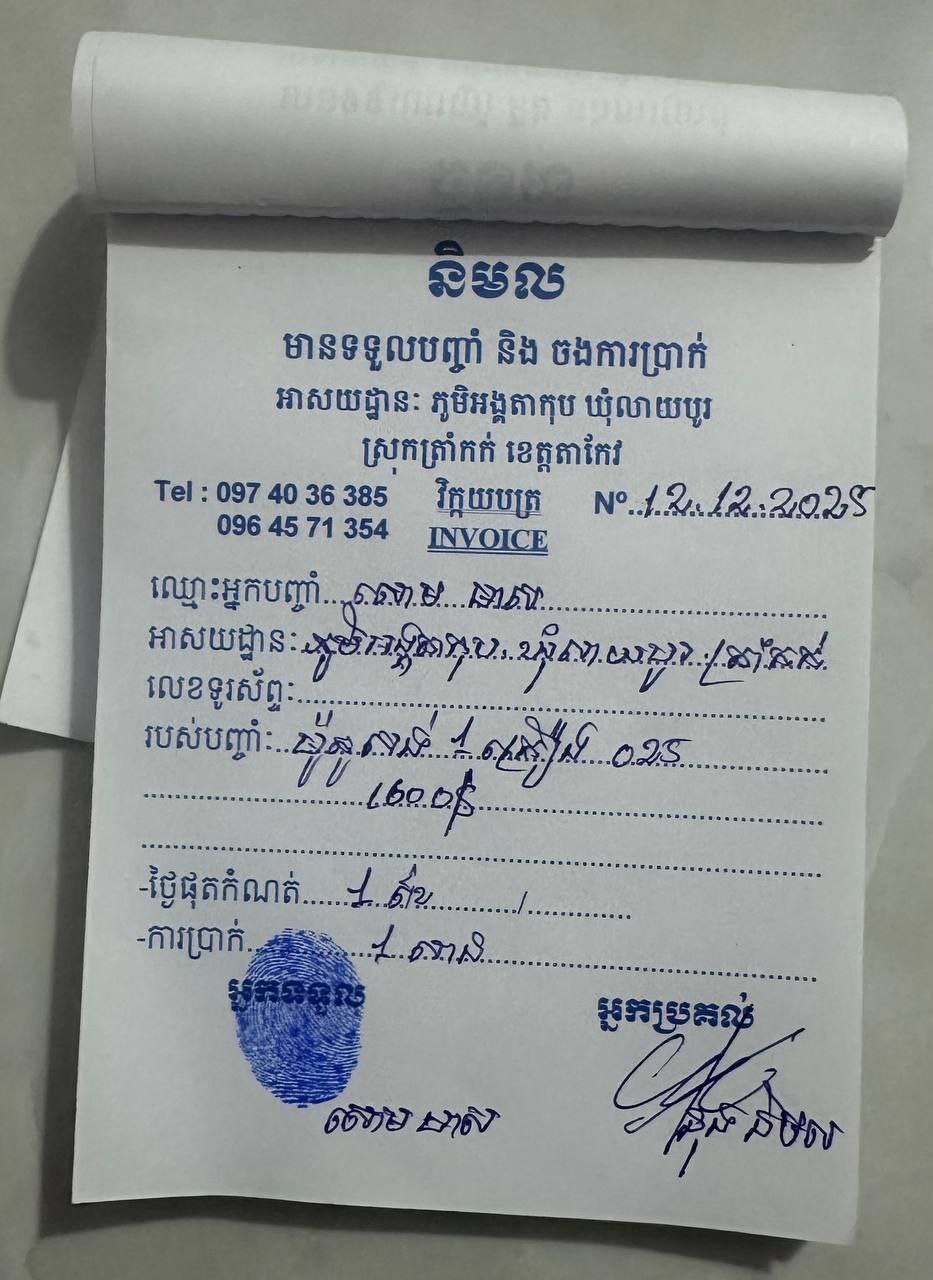 ជនរងគ្រោះឈ្មោះ អ៊ុំ ផាន្នី មានស្រុកកំណើតនៅភូមិពាម ឃុំកំពង់រាប ស្រុកព្រៃកប្បាស ខេត្តតាកែវ បានបញ្ជាក់ថា គាត់បានទិញម៉ូតូពីហាង «និមល» កាលពីនៅថ្ងៃទី១៣ ខែកុម្ភៈ ឆ្នាំ២០២៦ ហើយនៅពេលបានផ្លាកលេខ និងកាតគ្រី កន្លែងលក់នោះបានប្រគល់ឲ្យគាត់ទៅយកកឹបដោយខ្លួនឯង។