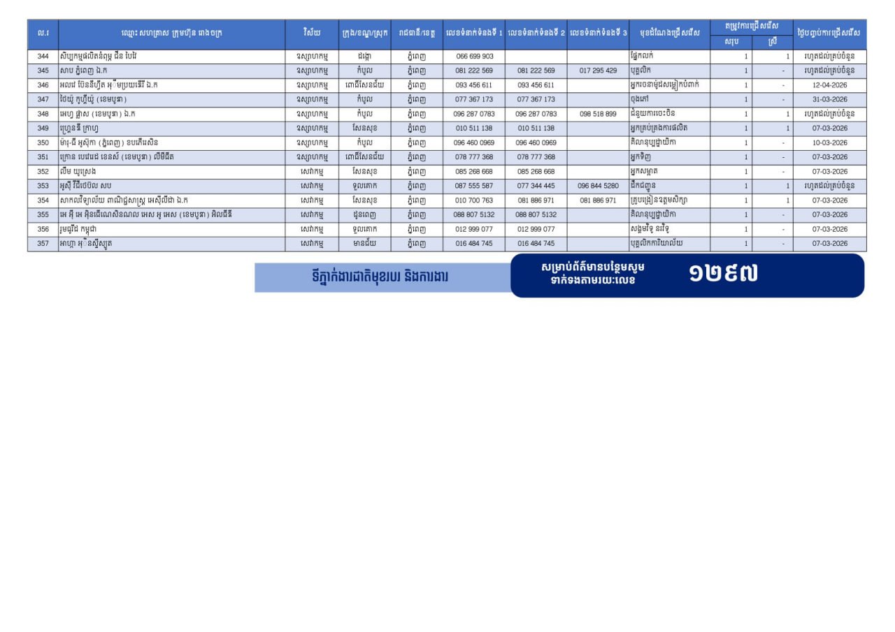 ជាមួយគ្នានេះ ក្រៅពីទំនាក់ទំនងផ្ទាល់ជាមួយក្រុមហ៊ុន រោងចក្រ សហគ្រាស អ្នកស្វែងរកការងារទាំងអស់ ជាពិសេសបងប្អូនអតីតពលករ ក៏អាចទាក់ទងមកប្រព័ន្ធទំនាក់ទំនងបន្ទាន់ ១២៩៧ ដើម្បីឱ្យក្រសួងការងារជួយសម្របសម្រួលស្វែងរកការងារជូនផងដែរ។ នេះបើតាមក្រសួងការងារដដែល៕