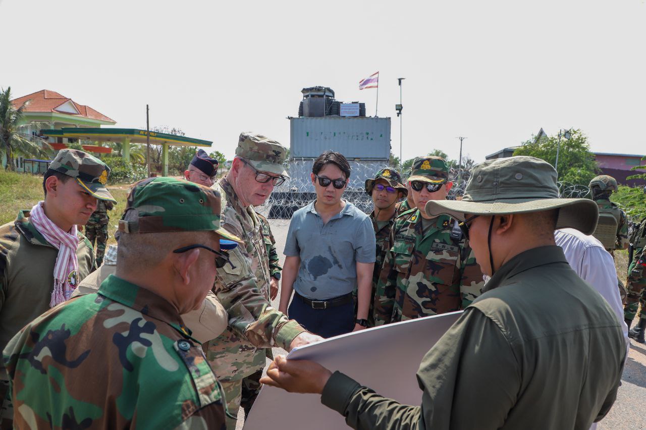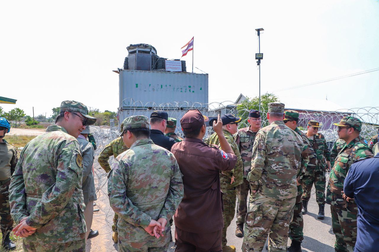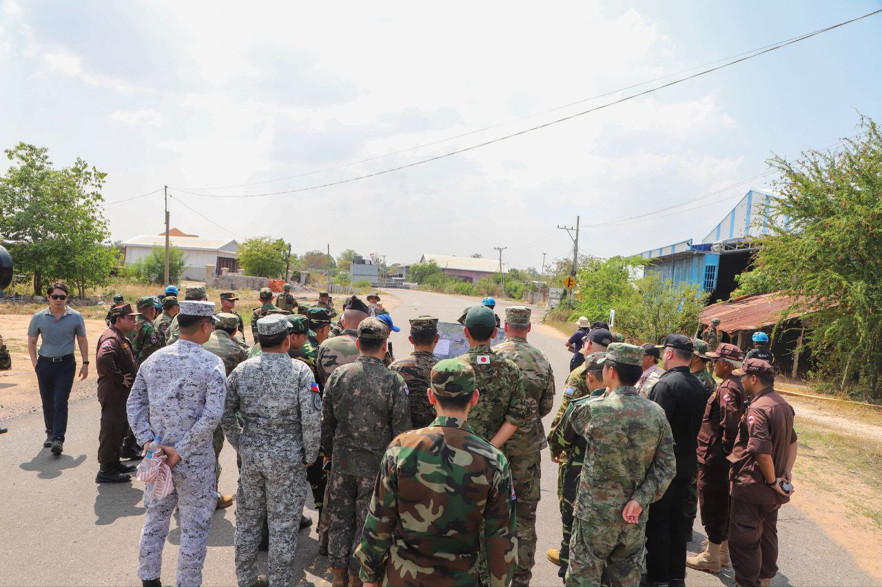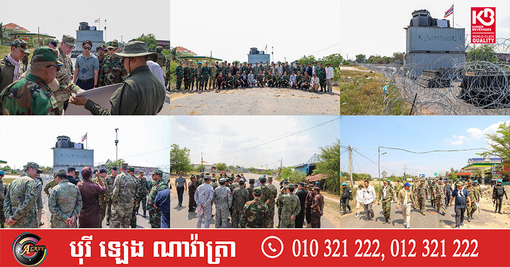 ប្រតិភូអនុព័ន្ធយោធាបរទេសប្រចាំកម្ពុជា ចុះពិនិត្យទីតាំងនៅតំបន់ច្រកបឹងត្រកួន និងទីតាំងគ្រាប់មិនទាន់ផ្ទុះ នៅស្រុកថ្មពួក ដែលត្រូវបំផ្លិចបំផ្លាញ រាយបន្លាលួស ដាក់ពង្រាយទូកុងតឺន័រ និងកាន់កាប់ដោយខុសច្បាប់របស់យោធាថៃ