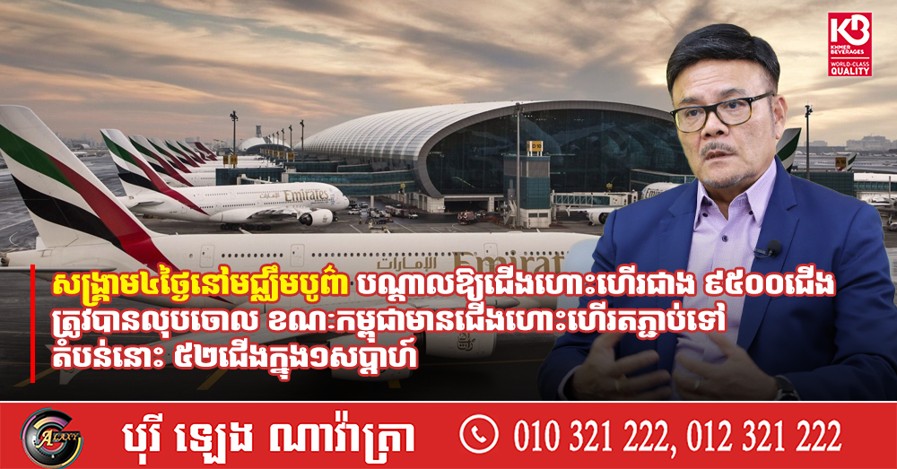 សង្រ្គាម៤ថ្ងៃនៅមជ្ឈឹមបូព៌ា បណ្តាលឱ្យជើងហោះហើរជាង ៩៥០០ជើងត្រូវបានលុបចោល ខណៈកម្ពុជាមានជើងហោះហើរតភ្ជាប់ទៅតំបន់នោះ ៥២ជើងក្នុង១សប្តាហ៍