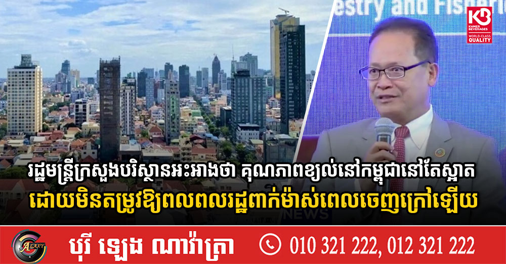 រដ្ឋមន្រ្តីក្រសួងបរិស្ថានអះអាងថា គុណភាពខ្យល់នៅកម្ពុជានៅតែស្អាត ដោយមិនតម្រូវឱ្យពលពលរដ្ឋពាក់ម៉ាស់ពេលចេញក្រៅឡើយ (Video inside)