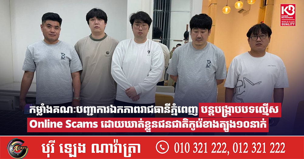 កម្លាំងគណៈបញ្ជាការឯកភាពរាជធានីភ្នំពេញ បន្តបង្ក្រាបបទល្មើស Online Scams ដោយឃាត់ខ្លួនជនជាតិកូរ៉េខាងត្បូង១០នាក់