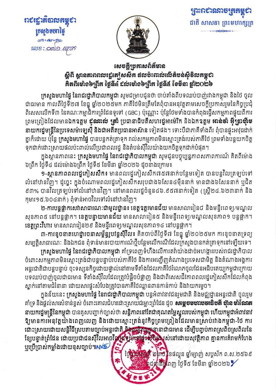 ខាងក្រោមនេះ ជាសេចក្ដីប្រកាសព័ត៌មានរបស់ក្រសួងមហាផ្ទៃ៖