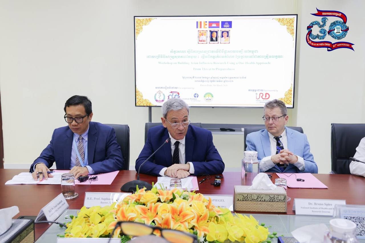 នៅក្នុងឱកាសនោះលោកសាស្រ្តាចារ្យ សាផុន វឌ្ឍនៈ ទីប្រឹក្សាក្រសួងសុខាភិបាល និងជាសាកលវិទ្យាធិការ នៃសាកលវិទ្យាល័យវិទ្យាសាស្រ្តសុខាភិបាល បានឱ្យដឹងថា ប្រទេស«កម្ពុជាយើងបានឈានមុខគេក្នុងការរៀបចំប្រព័ន្ធតាមដានជំងឺដែលឆ្លងពីសត្វមកមនុស្សតាមរយៈកិច្ចសហការល្អរវាង ក្រសួងសុខាភិបាល ជាមួយក្រសួងកសិកម្ម រុក្ខាប្រមាញ់និងនេសាទ និងក្រសួងបរិស្ថាន។ ប៉ុន្តែយើងនៅខ្វះយន្តការសំរបសំរួលការធ្វើការងារសិក្សាស្រាវជ្រាវអំពីជំងឺផ្តាសាយបក្សីនេះដោយប្រើប្រាស់វិធីសាស្ត្រ សុខភាព តែមួយនិងខ្វះខាតនូវសមត្ថភាពធនធានមនុស្សក្នុងការងារស្រាវជ្រាវជំងឺឆ្លងដែលកើតឡើងថ្មីៗ»។