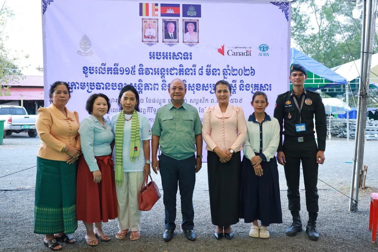 (ព្រះវិហារ)៖ មន្ទីរកិច្ចការនារីខេត្តព្រះវិហារ សហការជាមួយអង្គការអាដ្រាកម្ពុជា ប្រចាំខេត្តព្រះវិហារ នៅថ្ងៃទី០៥ ខែមីនា ឆ្នាំ២០២៦ បានរៀបចំពិធីអបអរសាទរ ខួបលើកទី១១៥ ទិវានារីអន្តរជាតិ ៨មីនា ឆ្នាំ២០២៦ ក្រោមប្រធានបទ «សន្តិភាព និងសន្តិសុខ សម្រាប់ស្ត្រី និងគ្រួសារ» នៅតាមមណ្ឌលសុវត្ថិភាពក្នុងខេត្តព្រះវិហារ ដើម្បីសម្ដែងនូវការយកចិត្តទុកដាក់ លើកកម្ពស់តម្លៃស្ត្រី និងផ្តល់កម្លាំងចិត្តដល់បងប្អូនប្រជាពលរដ្ឋភៀសសឹក ឱ្យទទួលបាននូវភាពកក់ក្តៅ និងសុវត្ថិភាពទាំងផ្លូវកាយ និងផ្លូវចិត្ត។