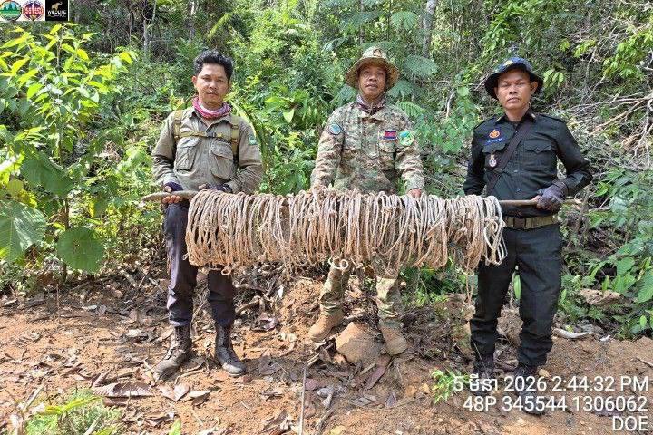 អន្ទាក់ចាប់សត្វជាច្រើនខ្សែ ត្រូវបានមន្ត្រីឧទ្យានុរក្ស និងកងរាជអាវុធហត្ថខេត្តកោះកុង ប្រមូលចេញពីក្នុងព្រៃ