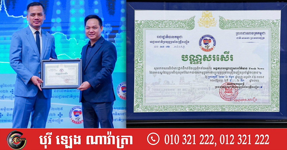 (ភ្នំពេញ)៖ អាជ្ញាធរជាតិប្រយុទ្ធប្រឆាំងគ្រឿងញៀន នៅព្រឹកថ្ងៃទី៦ ខែមីនា ឆ្នាំ២០២៦នេះ បានបន្តផ្តល់ប័ណ្ណសរសើរ ជូនបណ្ដាញព័ត៌មាន Fresh News បន្ទាប់ពីបានចូលរួមចំណែកយ៉ាងសកម្មជាមួយរាជរដ្ឋាភិបាលកម្ពុជា ក្នុងការងារប្រយុទ្ធប្រឆាំងគ្រឿងញៀន ។