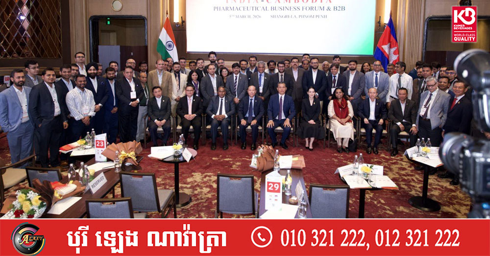 (ភ្នំពេញ)៖ គណៈប្រតិភូអាជីវកម្មឥណ្ឌាចំនួន ៧០ នាក់ ដែលតំណាងឱ្យក្រុមហ៊ុនឱសថឥណ្ឌាឈានមុខចំនួន ៥៦ បានចូលរួមក្នុង ការផ្គូផ្គងអាជីវកម្ម (B2B - Business to Business) នៅថ្ងៃទី០៥ ខែមីនា ឆ្នាំ២០២៦ នៅរាជធានីភ្នំពេញ ដើម្បីស្វែងរកឱកាសពាណិជ្ជកម្ម និងវិនិយោគក្នុងវិស័យឱសថរបស់កម្ពុជា។