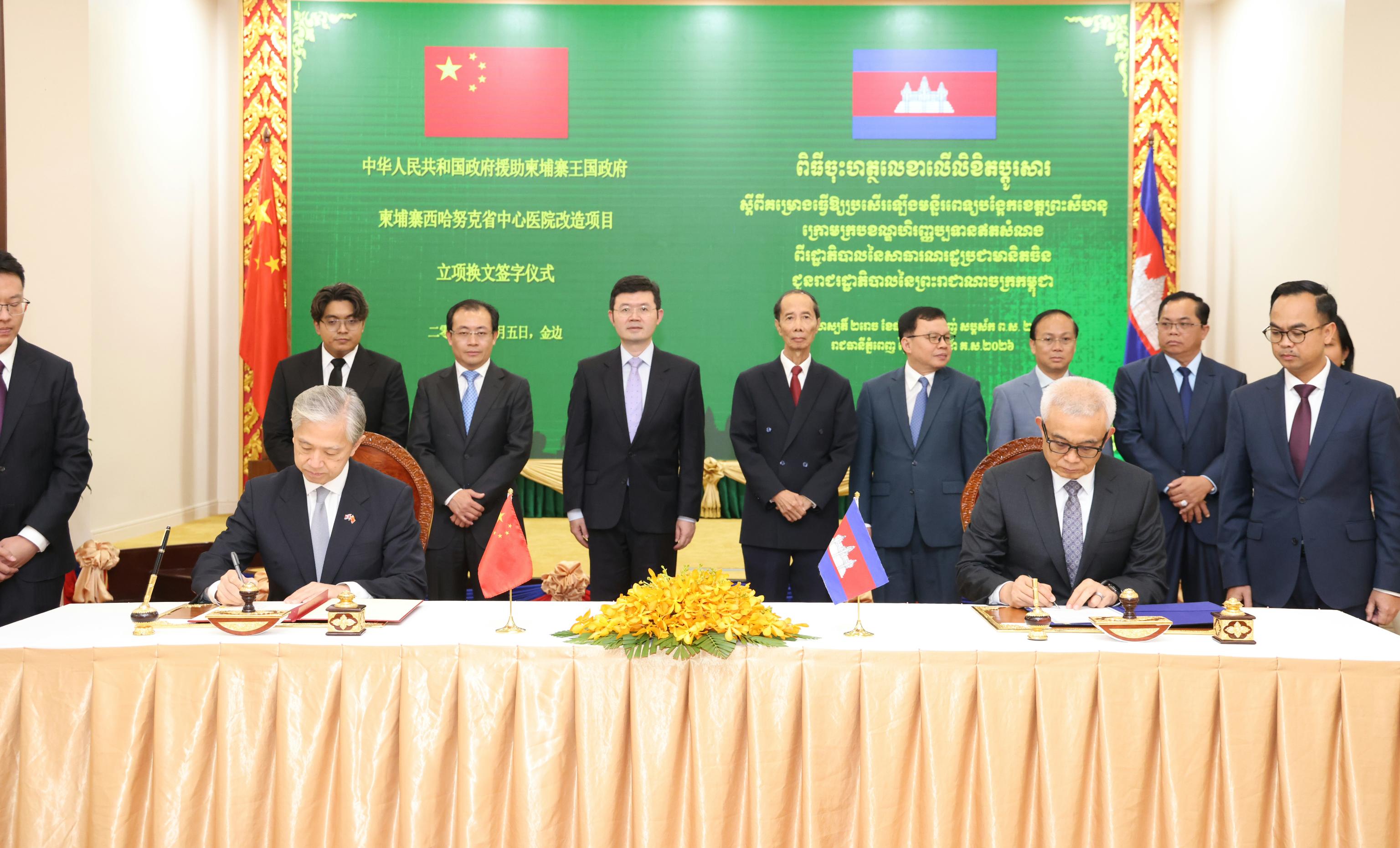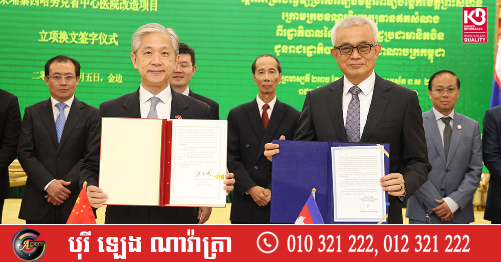 (ភ្នំពេញ)៖ អគ្គបណ្ឌិតសភាចារ្យ អូន ព័ន្ធមុនីរ័ត្ន ឧបនាយករដ្ឋមន្ត្រី រដ្ឋមន្ត្រីក្រសួងសេដ្ឋកិច្ច និងហិរញ្ញវត្ថុ ក្នុងនាមរាជរដ្ឋាភិបាលកម្ពុជា និងឯកឧត្តម វ៉ាង វិនពីន ឯកអគ្គរដ្ឋទូតចិនប្រចាំនៅកម្ពុជា ក្នុងនាមរដ្ឋាភិបាលចិន នៅថ្ងៃទី៥ ខែមីនា ឆ្នាំ២០២៦ បានចុះហត្ថលេខាលើលិខិតប្តូរសារ ស្តីពីគម្រោងធ្វើឱ្យប្រសើរឡើងមន្ទីរពេទ្យបង្អែកខេត្តព្រះសីហនុ ក្រោមក្របខណ្ឌហិរញ្ញប្បទានឥតសំណងពីរដ្ឋាភិបាលនៃសាធារណរដ្ឋប្រជាមានិតចិន។