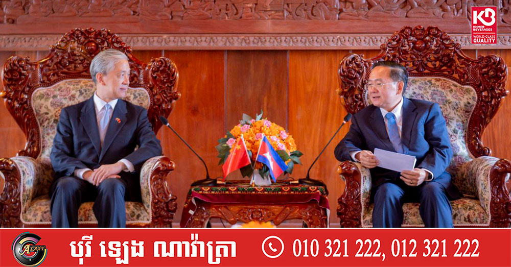 (បាត់ដំបង)៖ លោក សុខ លូ អភិបាលខេត្តបាត់ដំបង នៅថ្ងៃទី៦ ខែមីនា ឆ្នាំ២០២៦ បានអញ្ជើញទទួលជួបសម្ដែងការគួរសម និងពិភាក្សាការងារជាមួយលោក វ៉ាង វិនពីន (Wang Wenbin) ឯកអគ្គរដ្ឋទូតចិនប្រចាំកម្ពុជា ដើម្បីពង្រឹងទំនាក់ទំនង កិច្ចសហប្រតិបត្តិការ និងស្វែងយល់ពីសក្ដានុពលចម្រុះនៅខេត្តបាត់ដំបង។