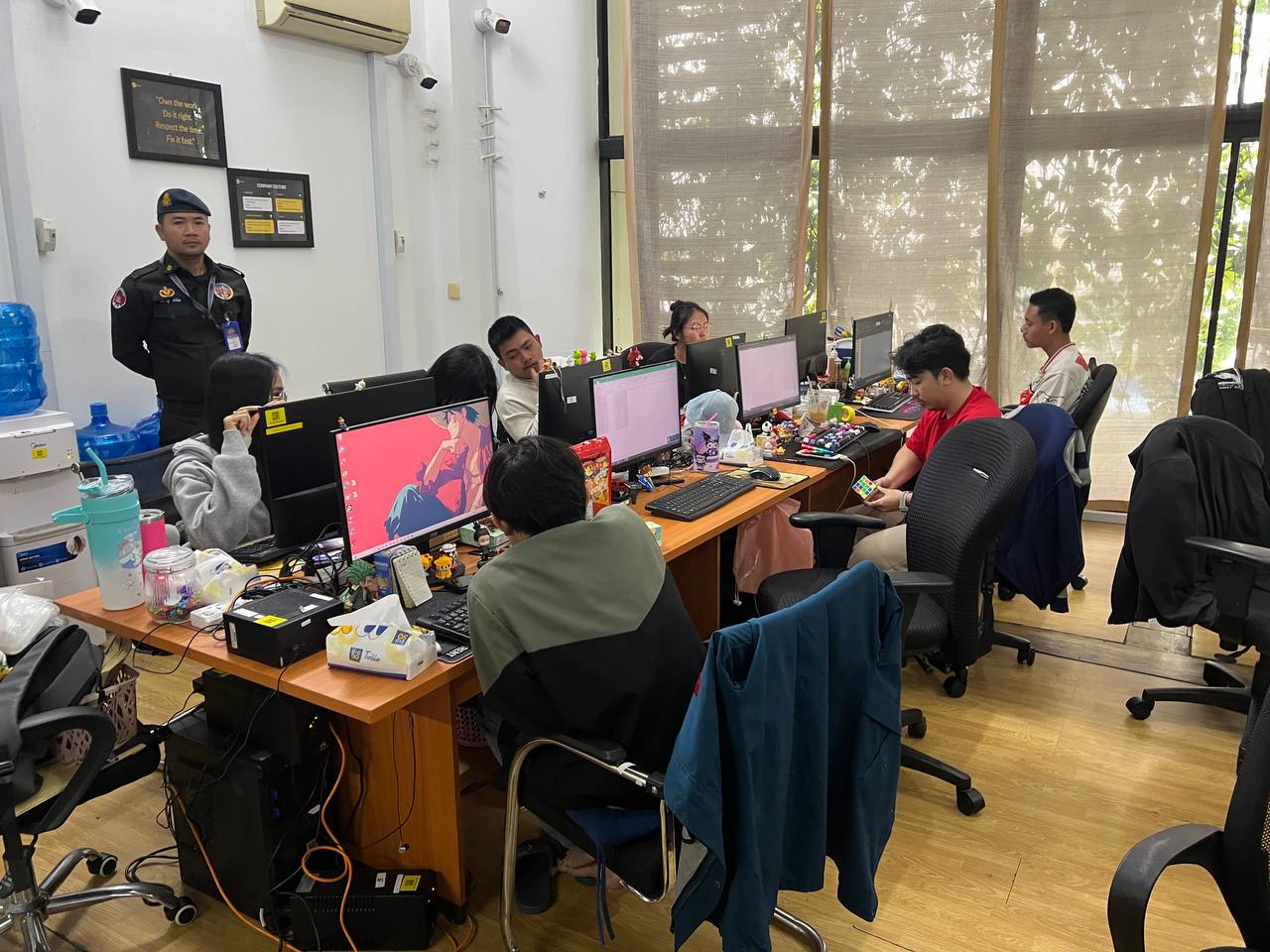 កម្លាំងគណៈបញ្ជាការឯកភាពរដ្ឋបាលរាជធានីភ្នំពេញ បង្ក្រាបទីតាំង Online Scam នៅខណ្ឌជ្រោយចង្វារ និងរកឃើញការនៅប្រមូលផ្តុំរបស់ជនបរទេសក្នុងខណ្ឌដូនពេញ ដោយឃាត់ខ្លួនជនបរទេស៩៩នាក់