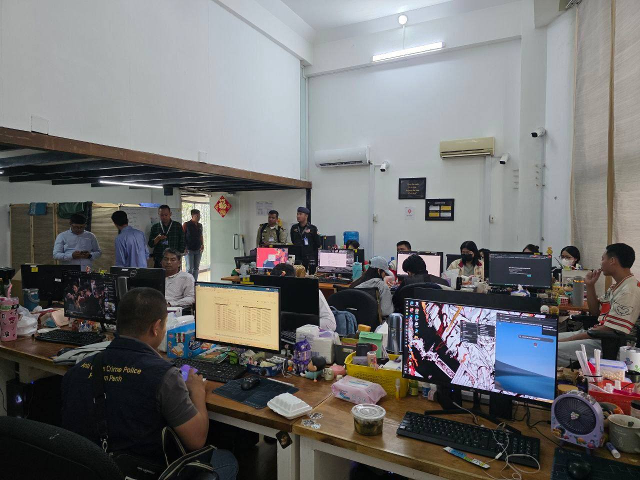 (ភ្នំពេញ)៖ ដោយអនុវត្តន៍តាមប្រសាសន៍របស់រាជរដ្ឋាភិបាល, លោក ឃួង ស្រេង អភិបាលរាជធានីភ្នំពេញ និងលោកឧត្តមសេនីយ៍ឯក ជួន ណារិន្ទ អគ្គស្នងការរង និងជាស្នងការនគរបាលរាជធានីភ្នំពេញ ក្រោមការសម្របសម្រួលនីតិវិធីពីព្រះរាជអាជ្ញា នៃអយ្យការអមសាលាដំបូងរាជធានីភ្នំពេញ គណៈបញ្ជាការឯកភាពរខណ្ឌជ្រោយចង្វារ និងគណៈបញ្ជាការឯកភាពខណ្ឌដូនពេញ បានចុះត្រួតពិនិត្យរដ្ឋបាលទីតាំងប្រមូលផ្តុំជនបរទេស សង្ស័យលួចលាក់ប្រព្រឹត្តបទល្មើសឆបោកតាមប្រព័ន្ធបច្ចេកវិទ្យា (Online Scams) ចំនួន២ទីតាំងផ្សេងៗគ្នា ក្នុងភូមិសាស្រ្តរាជធានីភ្នំពេញ។