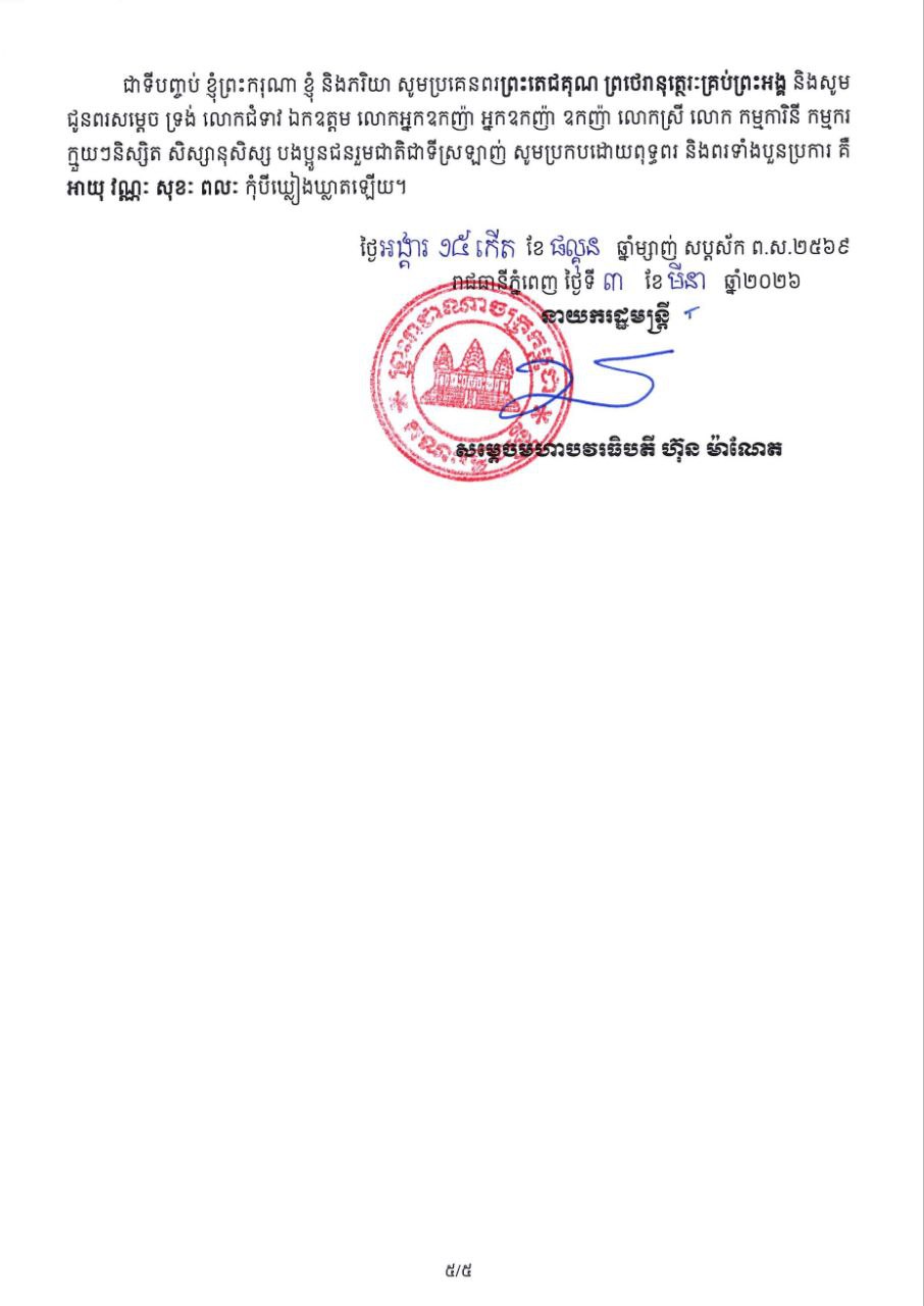 ខាងក្រោមនេះជាសារលិខិតរបស់សម្តេចបវរធិបតី ហ៊ុន ម៉ាណែត៖