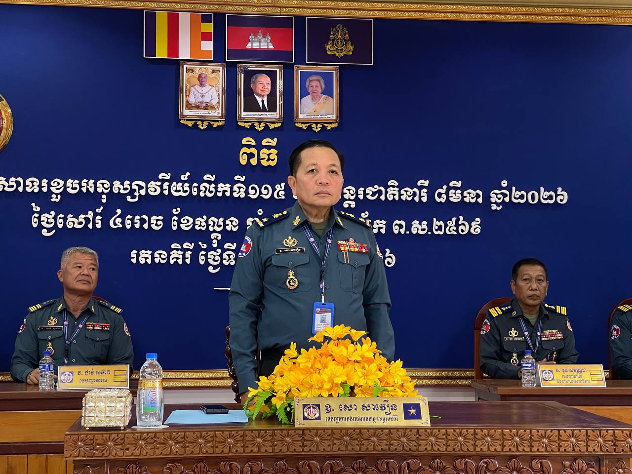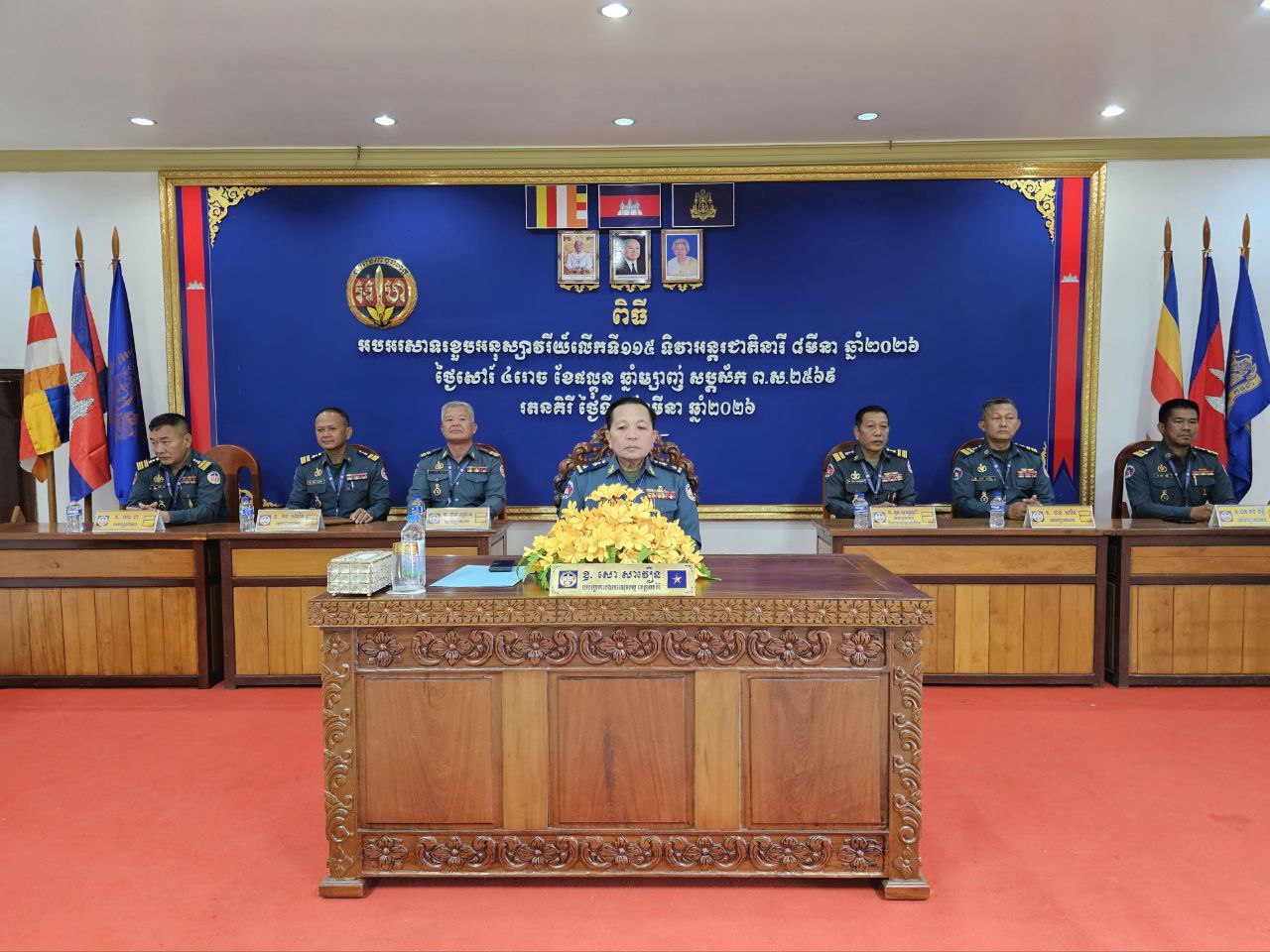 (រតនគិរី)៖ លោកឧត្តមសេនីយ៍ត្រី សោ សាវឿន មេបញ្ជាការកងរាជអាវុធហត្ថខេត្តរតនគិរី នៅព្រឹកថ្ងៃទី៧ ខែមីនា ឆ្នាំ២០២៦នេះ បានអញ្ជើញជាអធិបតីភាពរៀបចំពិធីអបអរសាទរខួបអនុស្សាវរីយ៍លើកទី១១៥ ទិវាអន្តរជាតិនារី ៨មីនា ឆ្នាំ២០២៦ ក្រោមប្រធានបទ «សន្តិភាព និងសន្តិសុខសម្រាប់ស្ត្រី និងគ្រួសារ» និងបានឧបត្ថម្ភនូវគ្រឿងឧបភោគបរិភោគដល់យោធិននៃកងរាជអាវុធហត្ថខេត្តចំនួន ២៧នាក់។