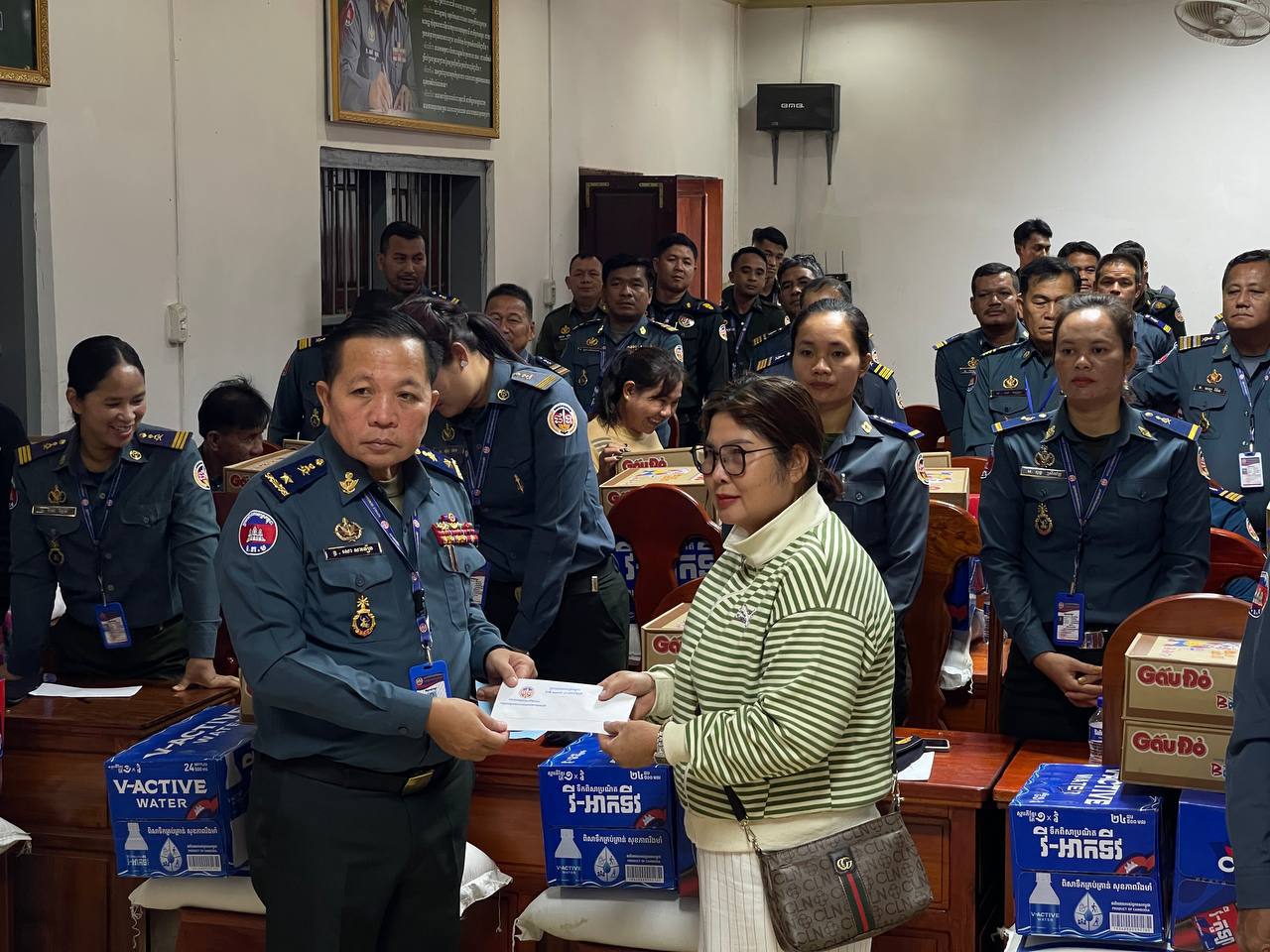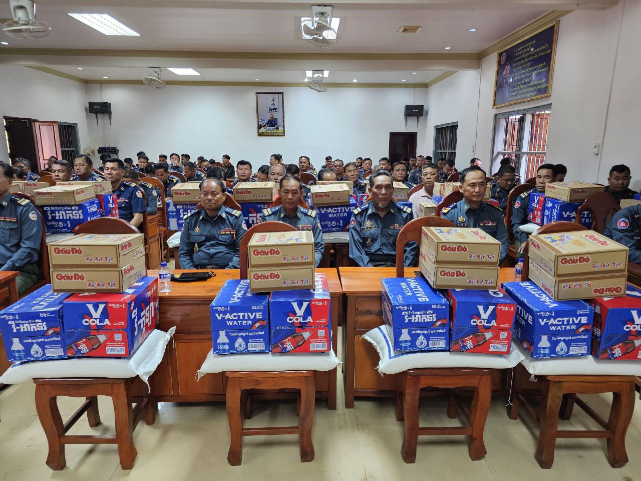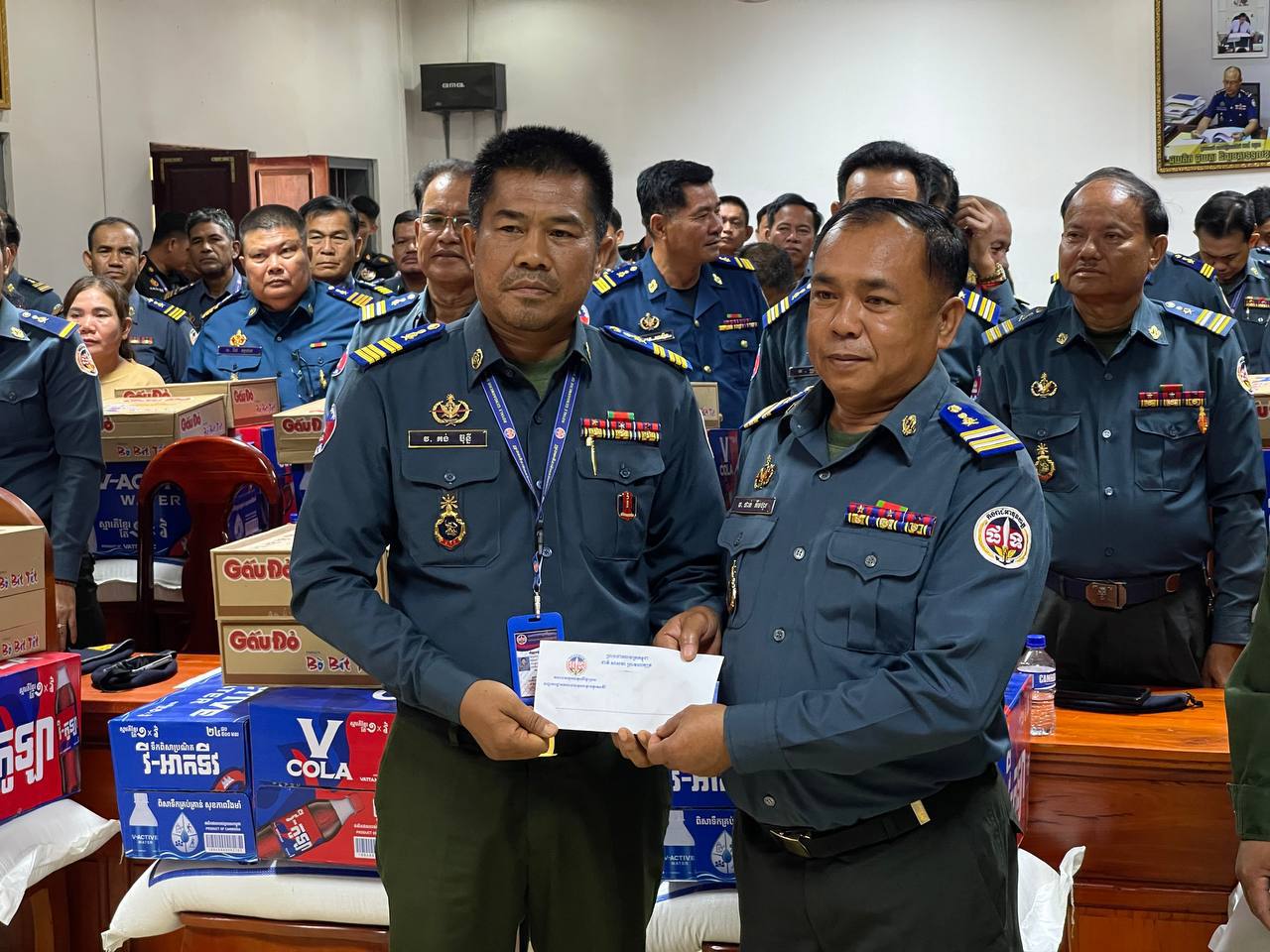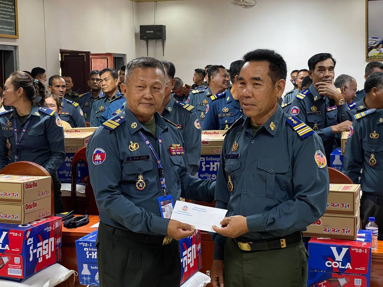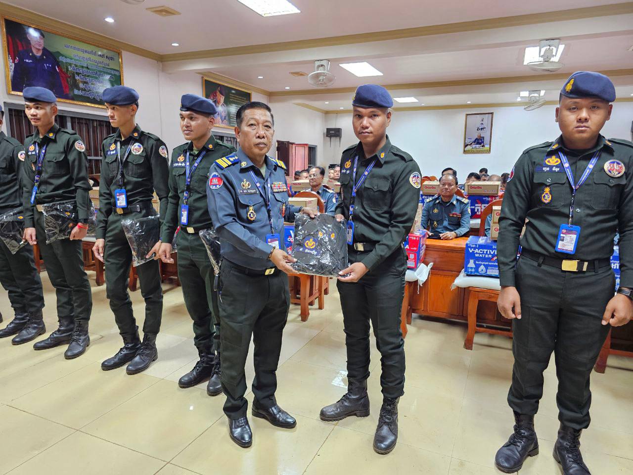 ក្នុងនោះសោធននិវត្តន៍ចំនួន ២០នាក់ គ្រួសារអតីតកងរាជអាវុធហត្ថមរណៈចំនួន ០២គ្រួសារ និងកងរាជអាវុធហត្ថនារីចំនួន ០៥នាក់ ដោយក្នុងម្នាក់ៗទទួលបានអង្ករចំនួន ០១បេ, មី ០២កេស, ទឹកបរិសុទ្ធវីអាក់ទីវចំនួន ០១កេស, ភេសជ្ជៈវីកូឡាចំនួន ០១កេស និងថវិកាចំនួន ១០០ ០០០រៀល។