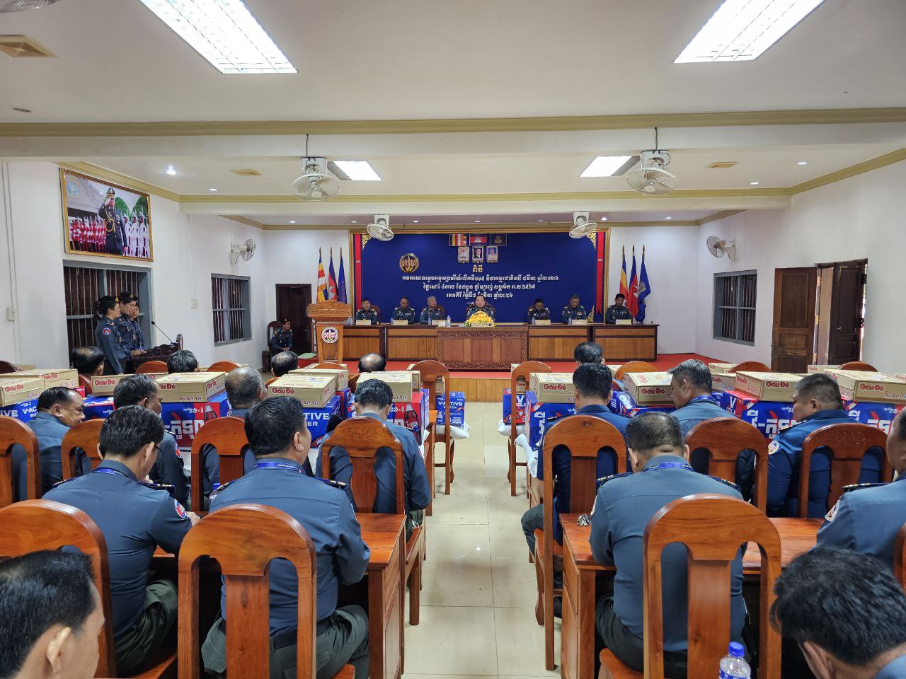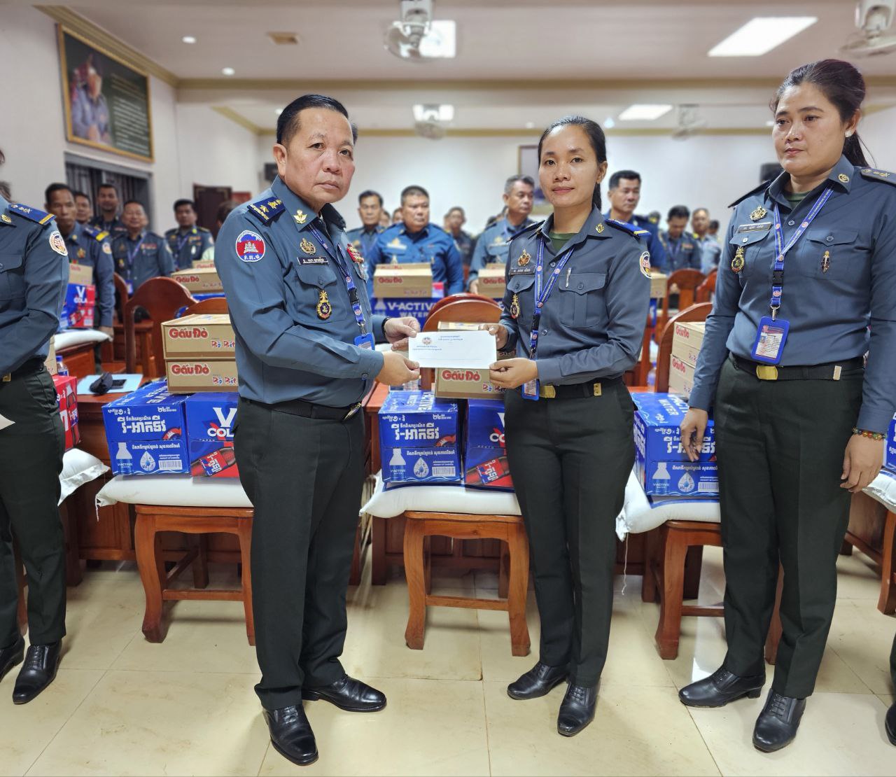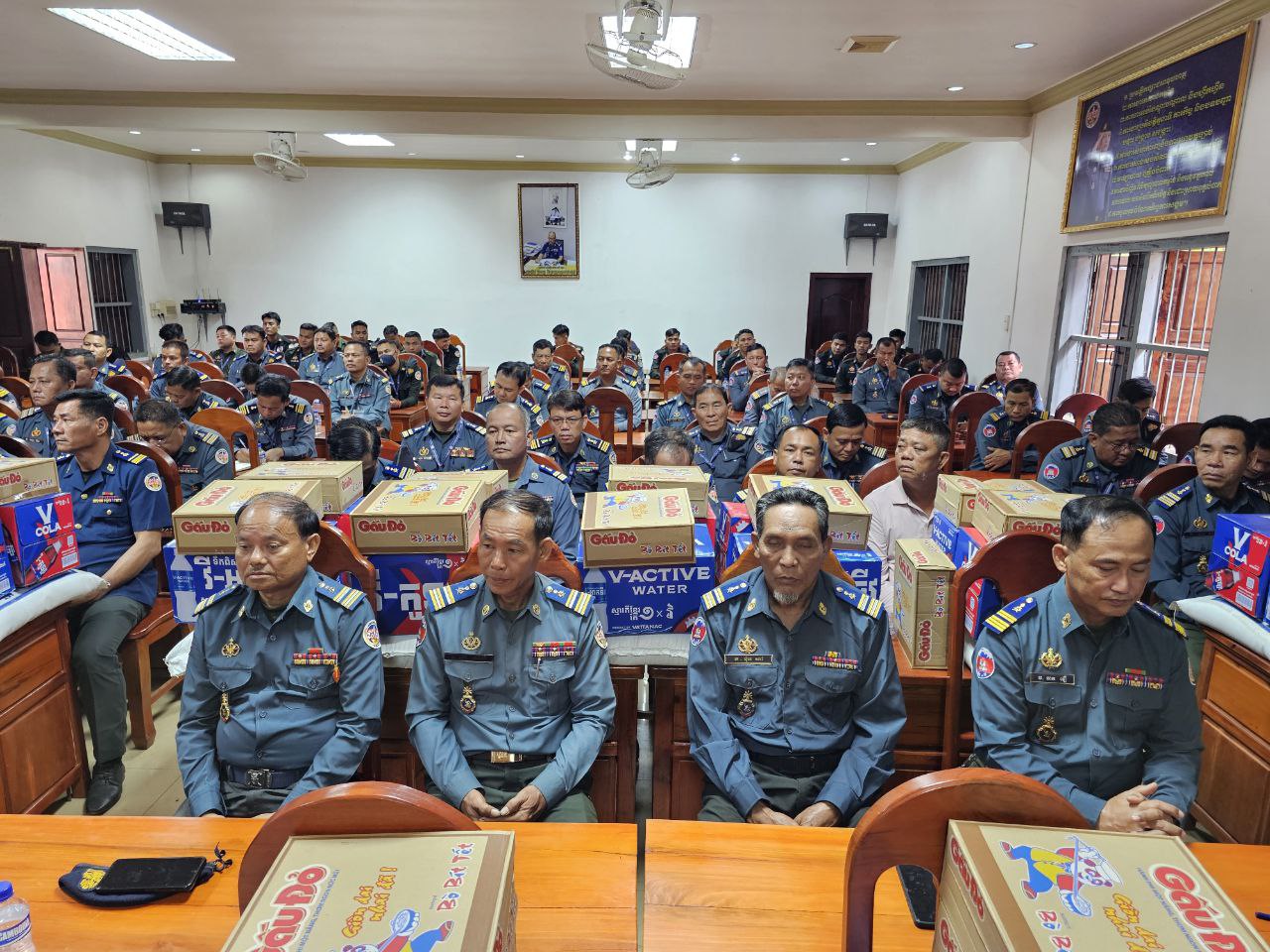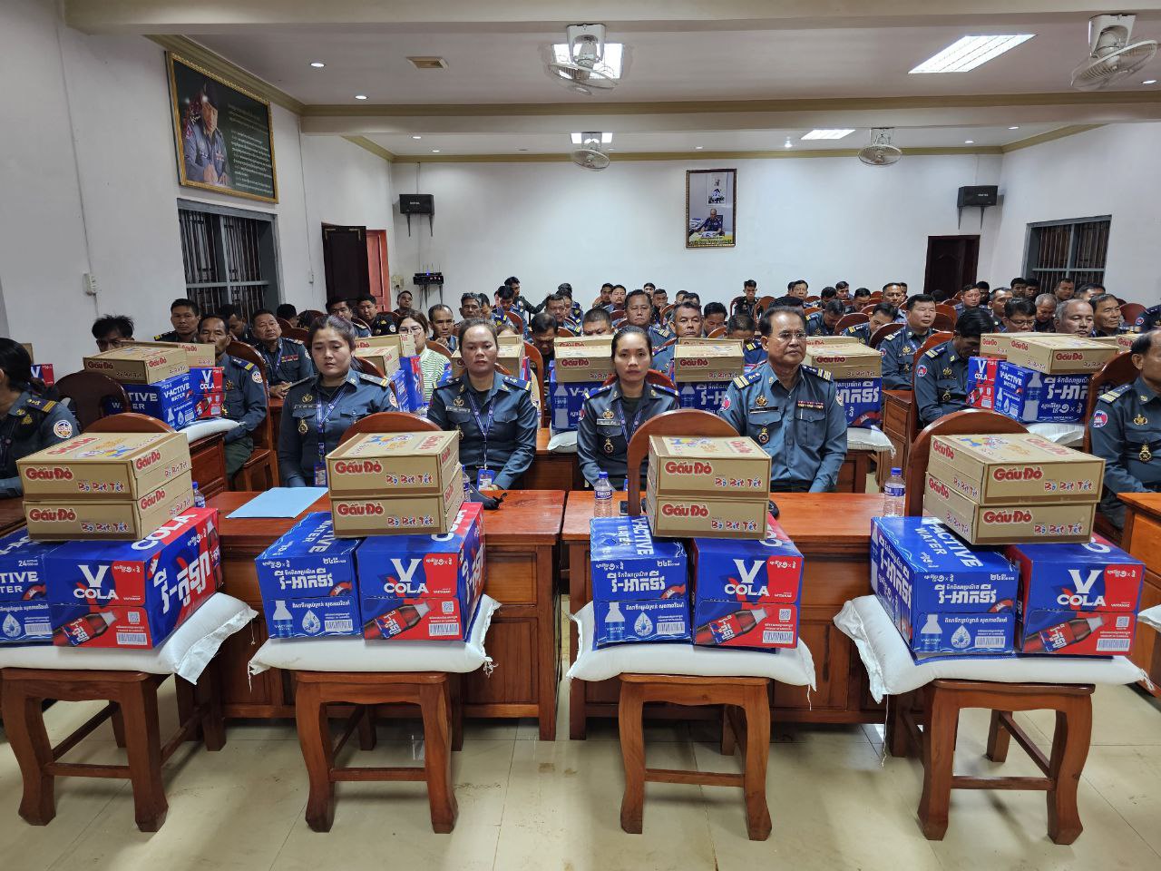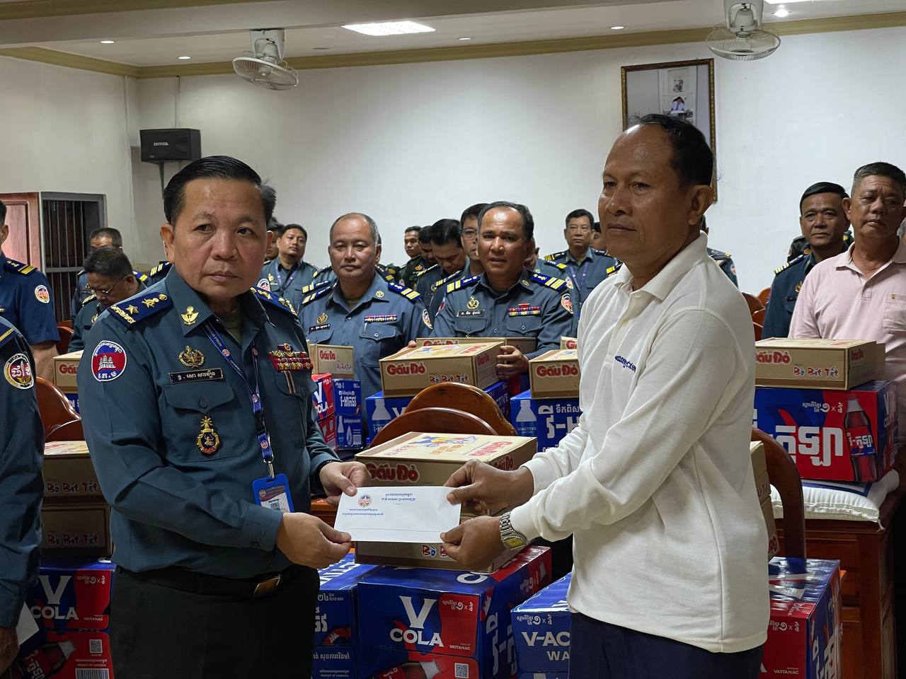 ក្នុងនោះសោធននិវត្តន៍ចំនួន ២០នាក់ គ្រួសារអតីតកងរាជអាវុធហត្ថមរណៈចំនួន ០២គ្រួសារ និងកងរាជអាវុធហត្ថនារីចំនួន ០៥នាក់ ដោយក្នុងម្នាក់ៗទទួលបានអង្ករចំនួន ០១បេ, មី ០២កេស, ទឹកបរិសុទ្ធវីអាក់ទីវចំនួន ០១កេស, ភេសជ្ជៈវីកូឡាចំនួន ០១កេស និងថវិកាចំនួន ១០០ ០០០រៀល។