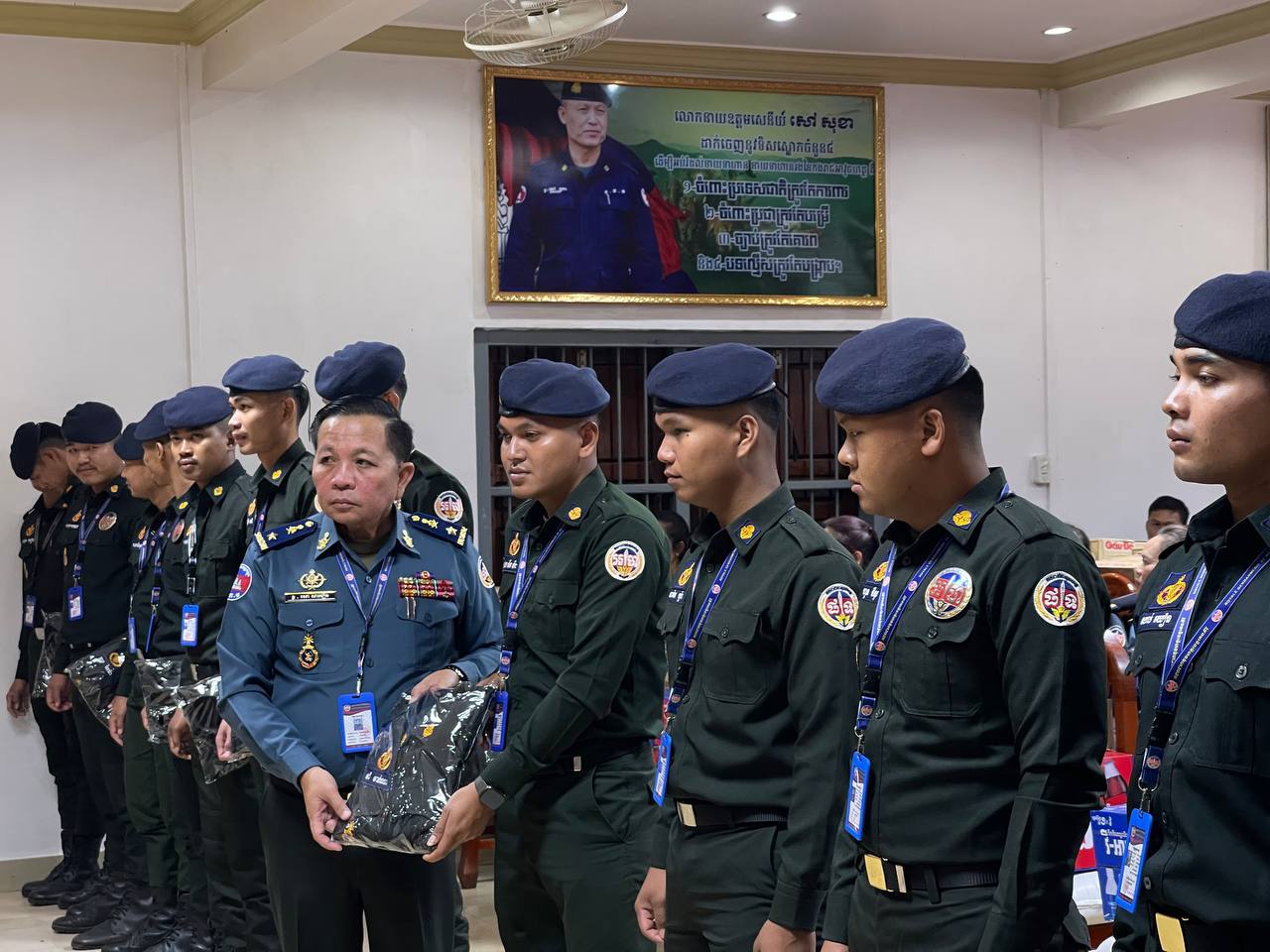 ក្នុងនោះដែរ លោកឧត្តមសេនីយ៍ត្រី សោ សាវឿន បានធ្វើការចែកជូននូវឯកសណ្ឋាន (ជំនាញ) ប្រតិបត្តិការចំនួន ៥៤កំប្លេ ជូនដល់កម្លាំងកងអនុសេនាធំចល័ត កងរាជអាវុធហត្ថខេត្តផងដែរ។