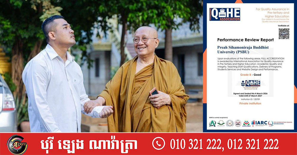 (ភ្នំពេញ)៖ ក្រោមព្រះរាជកិច្ចដឹកនាំដ៏ខ្ពង់ខ្ពស់ប្រកបដោយព្រះបញ្ញាញាណ និងចក្ខុវិស័យវែងឆ្ងាយរបស់សម្តេចព្រះមហាសង្ឃរាជ បួរ គ្រី ព្រះសាកលវិទ្យាធិការ នៃពុទ្ធិកសាកលវិទ្យាល័យព្រះសីហមុនីរាជា និងការដឹកនាំរបស់លោក ងួន ស្តេចភក្តី រដ្ឋលេខាធិការក្រសួងធម្មការ និងសាសនា ទទួលបន្ទុកពុទ្ធិកសាកលវិទ្យាល័យព្រះសីហមុនីរាជា បានបន្តជំរុញការអភិវឌ្ឍគុណភាពអប់រំ សម្រេចបានសមិទ្ធផលសំខាន់ថ្មីមួយទៀត លើឆាកអន្តរជាតិ។