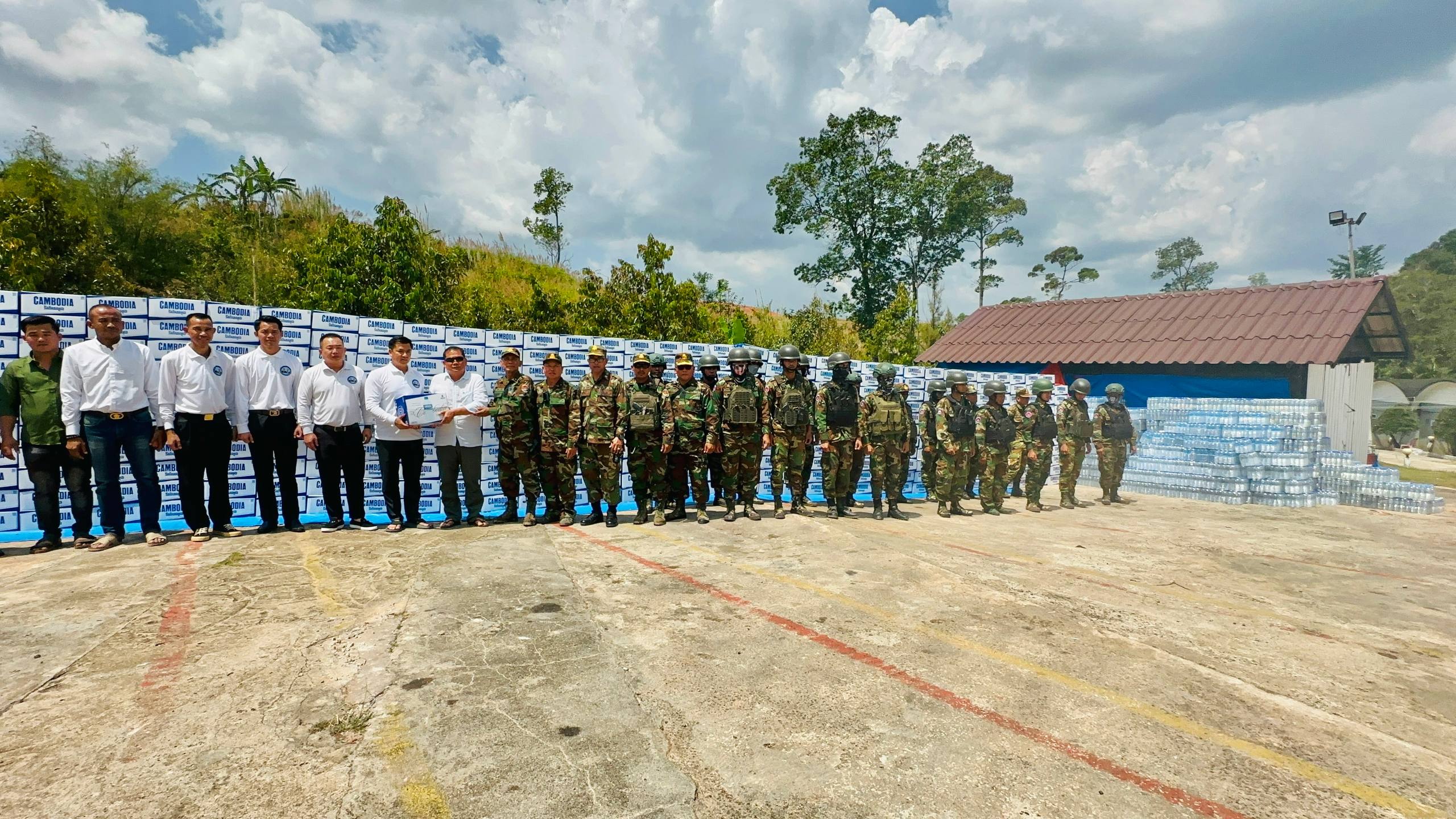 ក្រុមសេនាតេជោសន្តិភាព នាំយកទឹកបរិសុទ្ធកម្ពុជា ចំនួន៤,០០០កេស ជូនវីរកងទ័ព និងវីរនគរបាល ឈរជើងនៅជួរមុខនៅថ្មដា ស្រុកវាលវែង ខេត្តពោធិ៍សាត់