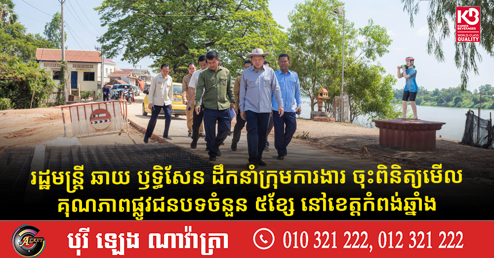 រដ្ឋមន្ត្រី ឆាយ ឫទ្ធិសែន ដឹកនាំក្រុមការងារ ចុះពិនិត្យមើលគុណភាពផ្លូវជនបទចំនួន ៥ខ្សែ នៅខេត្តកំពង់ឆ្នាំង