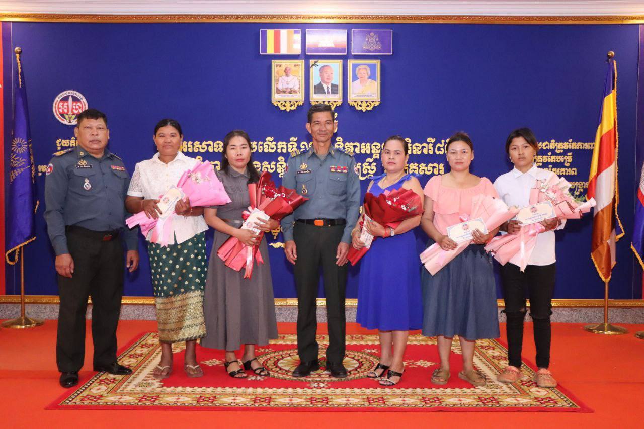 សម្រាប់បញ្ជាការដ្ឋានកងរាជអាវុធហត្ថខេត្តត្បូងឃ្មុំ មានយោធិននារីចំនួន០៥នាក់ គ្រួសារយោធិនចំនួន០៥គ្រួសារ ក្នុងម្នាក់ៗទទួលបានបាច់ផ្កា និងថវិកា៤០ម៉ឺនរៀល អ្នករៀបចំម្ហូបអាហារ ម្នាក់ទទួលបានបាច់ផ្កា និងថវិកា ២០ម៉ឺនរៀល សរុបថវិកា ៤,៩០០,០០០រៀល។