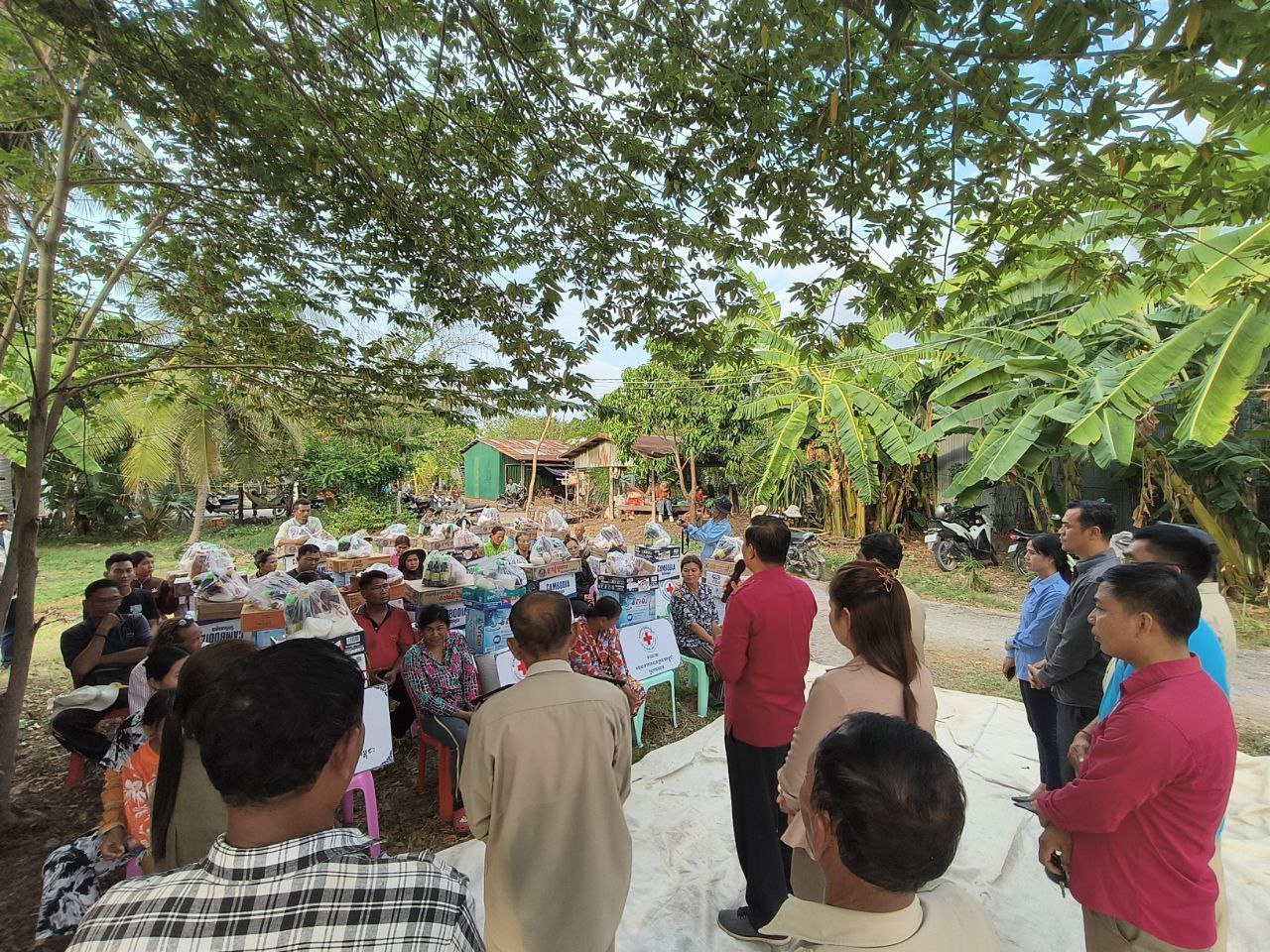 (បាត់ដំបង)៖ ដោយអនុវត្តតាមការណែនាំរបស់លោក សុខ លូ អភិបាលខេត្ត និងជាប្រធានគណៈកម្មាធិការសាខាកាកបាទក្រហមកម្ពុជាខេត្តបាត់ដំបង នៅរសៀលថ្ងៃទី៦ ខែមីនា ឆ្នាំ២០២៦ ក្រុមការងារអនុសាខាកាកបាទក្រហមកម្ពុជាស្រុកបាណន់ ដឹកនាំដោយលោក ស្រេង សុខា អភិបាលស្រុក និងជាប្រធានគណៈកម្មាធិការអនុសាខា ព្រមទាំងសហការី បានអញ្ជើញជួបសំណេះសំណាល សួរសុខទុក្ខ និងនាំយកអំណោយមនុស្សធម៌របស់សប្បុរសជន តាមរយៈអនុសាខាកាកបាទក្រហមកម្ពុជាស្រុក ផ្តល់ជូនប្រជាពលរដ្ឋរងគ្រោះដោយខ្យល់កន្រ្តាក់ បណ្ដាលឲ្យប៉ើងតំបូលចំនួន៤២គ្រួសារ មកពី៧ភូមិ ក្នុងឃុំភ្នំសំពៅចំនួន២៣ខ្នងផ្ទះ និងឃុំស្នឹងចំនួន១៩ខ្នងផ្ទះ ដែលរងផលប៉ះពាល់ កាលពីល្ងាចថ្ងៃទី៥ ខែមីនា ឆ្នាំ២០២៦កន្លងទៅ។