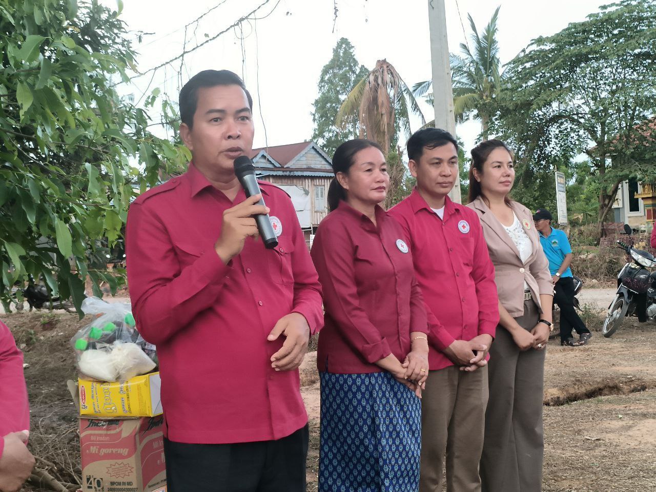 ថ្លែងក្នុងឱកាសសំណេះសំណាលនេះ លោក ស្រេង សុខា ប្រធានគណៈកម្មាធិការអនុសាខាស្រុក បាននាំនូវការផ្ដាំផ្ញើសួរសុខទុក្ខពីសំណាក់លោក សុខ លូ ប្រធានគណៈកម្មាធិការសាខាកាកបាទក្រហមកម្ពុជាខេត្ត ជាពិសេសសម្តេចកិត្តិព្រឹទ្ធបណ្ឌិត ប៊ុន រ៉ានី ហ៊ុនសែន ប្រធានកាកបាទក្រហមកម្ពុជា និងបានសម្ដែងនូវការសោកស្ដាយចំពោះការខូចខាតផ្ទះសំបែង ទ្រព្យសម្បត្តិរបស់ពលរដ្ឋ ដែលនេះជាគ្រោះមហន្តរាយបង្កដោយធម្មជាតិ គ្មាននរណាម្នាក់ចង់ជួបប្រទះឡើយ។