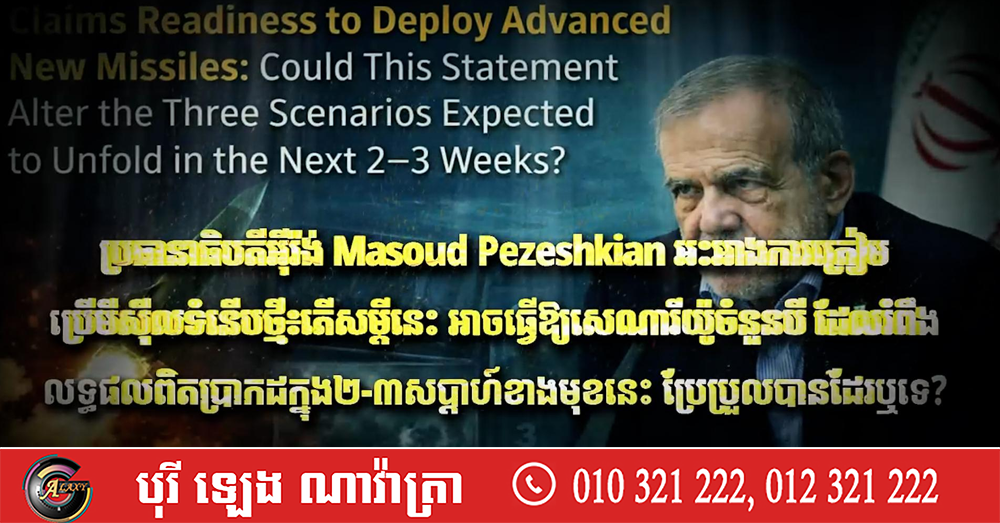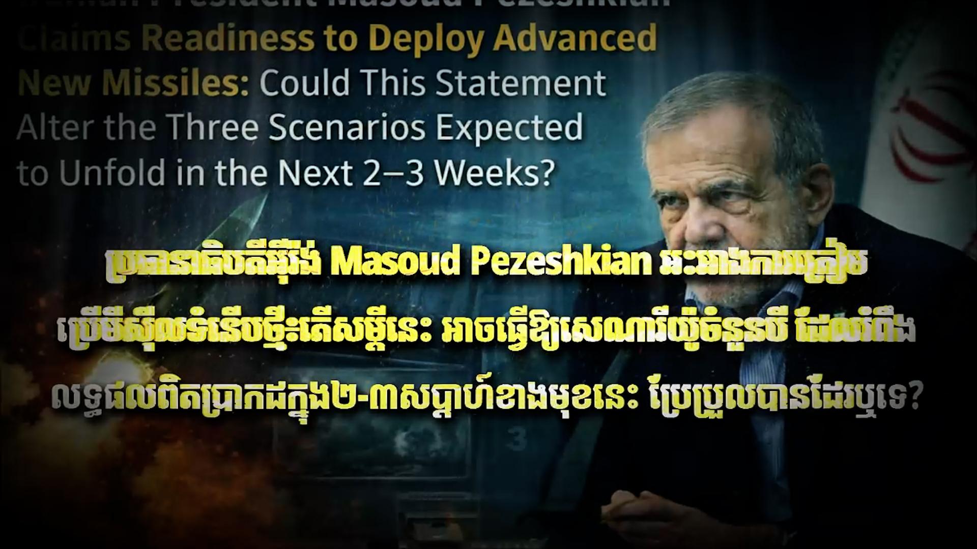 Fresh Exclusive: ប្រធានាធិបតីអ៊ីរ៉ង់ Masoud Pezeshkian អះអាងការត្រៀមប្រើមីស៊ីលទំនើបថ្មី៖ តើសម្តីនេះ អាចធ្វើឱ្យសេណារីយ៉ូចំនួនបី ដែលរំពឹងលទ្ធផលពិតប្រាកដក្នុង២-៣សប្តាហ៍ខាងមុខនេះ ប្រែប្រួលបានដែរឬទេ?