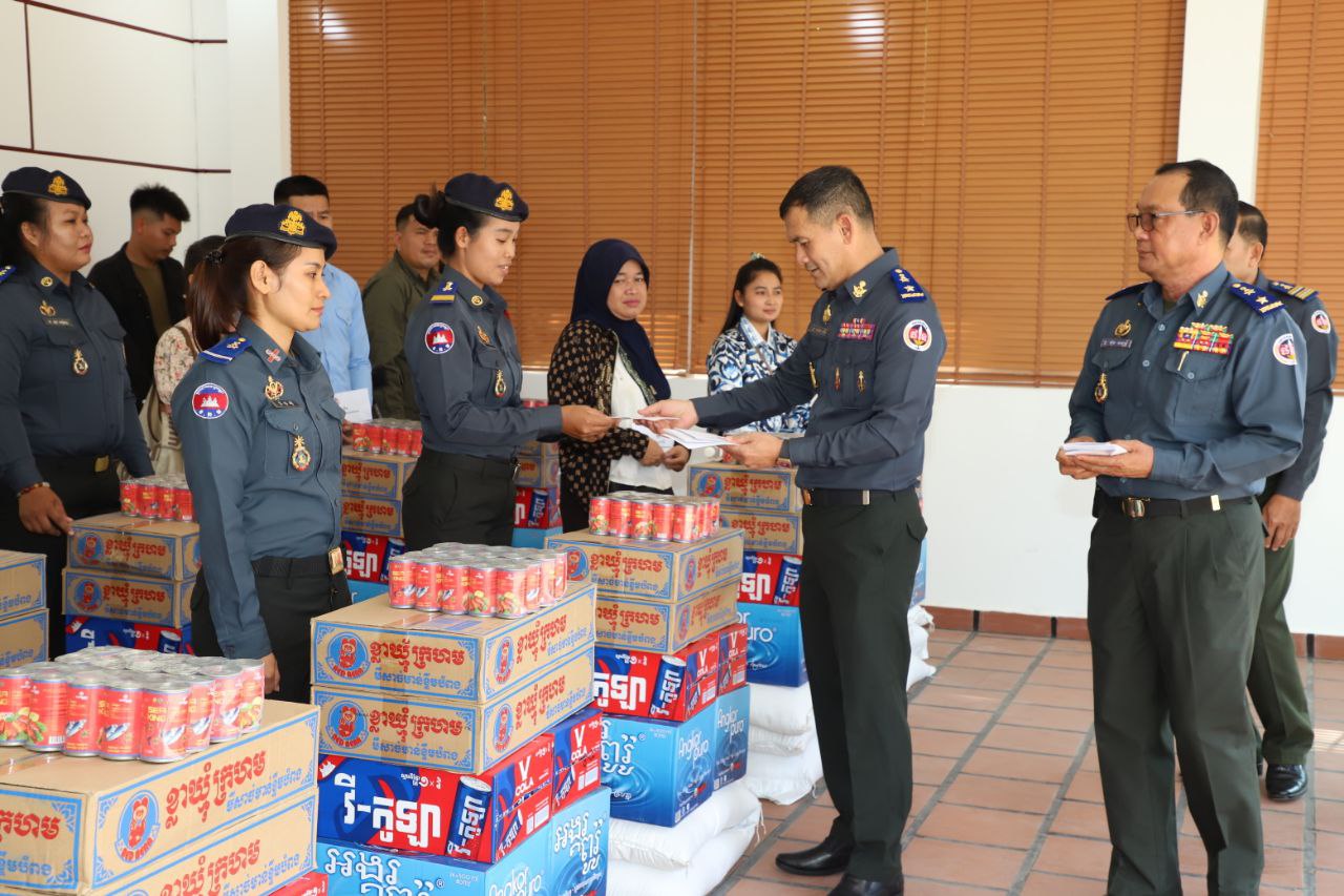 ក្នុងនោះដែរ គ្រួសារអាវុធហត្ថពលី-ពិការ-របួស ចំនួន៦គ្រួសារ ក្នុង១គ្រួសារទទួលបានអង្ករទំងន់៧០គីឡូក្រាម មី ចំនួន២កេស ទឹកសុទ្ធចំនួន២កេស ទឹកក្រូចចំនួន២កេស ត្រីខចំនួន២យួរ និងថវិកាចំនួន១លានរៀល ដោយឡែកអាវុធហត្ថនារីចំនួន១៩នាក់ ក្នុងម្នាក់ៗទទួលបាន អង្ករទំងន់៧០គីឡូក្រាម មីចំនួន២កេស ទឹកសុទ្ធចំនួន២កេស ទឹកក្រូចចំនួន២កេស ត្រីខចំនួន២យួរ និងថវិកា ចំនួន៤០ម៉ឺនរៀល៕