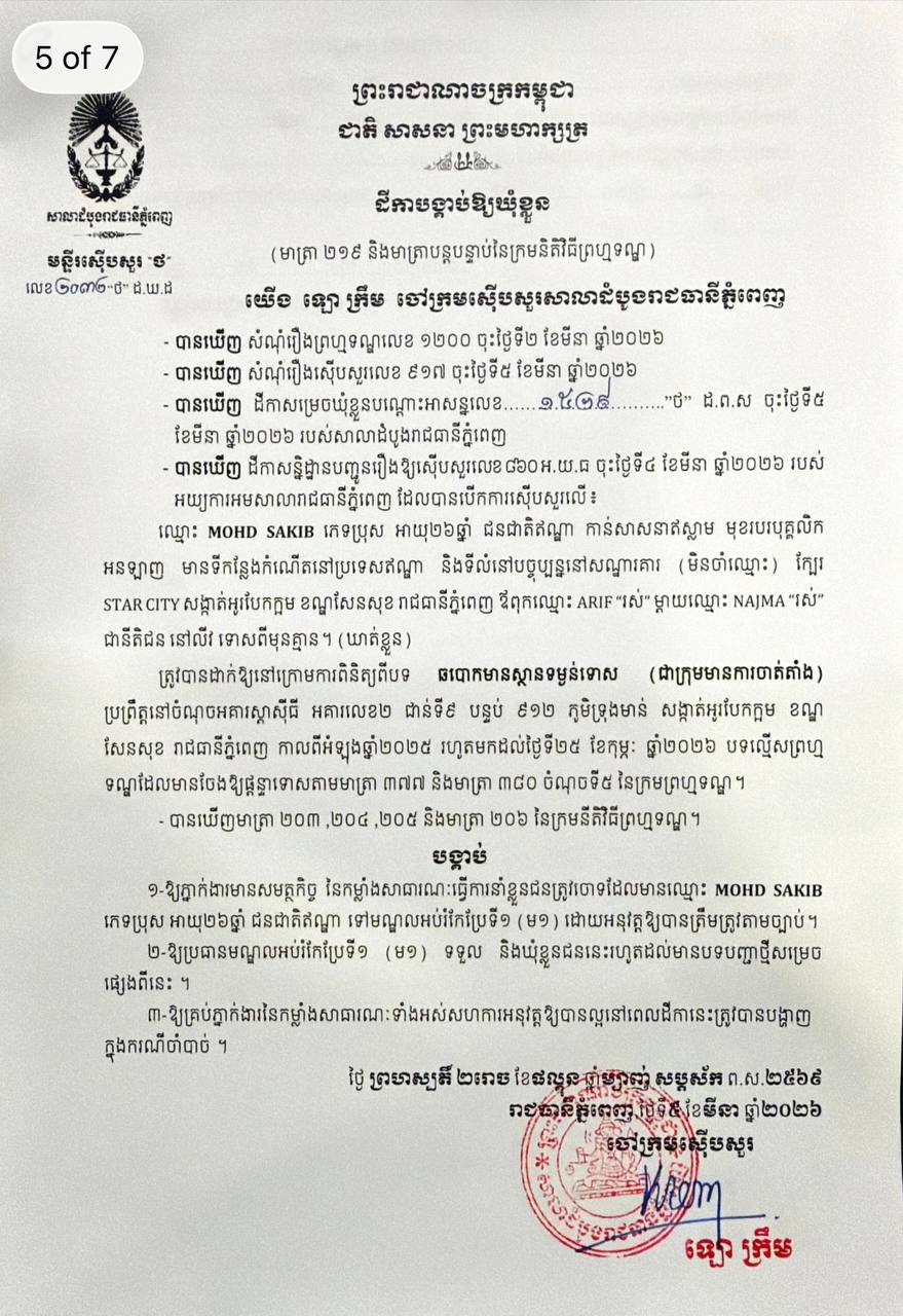 *ទី៧៖ ឈ្មោះ MOHD SAKIB ជនជាតិឥណ្ឌា។