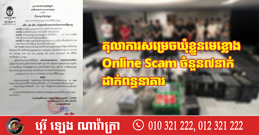 តុលាការសម្រេចឃុំខ្លួនមេខ្លោង Online Scam ចំនួន៧នាក់ ដាក់ពន្ធនាគារ