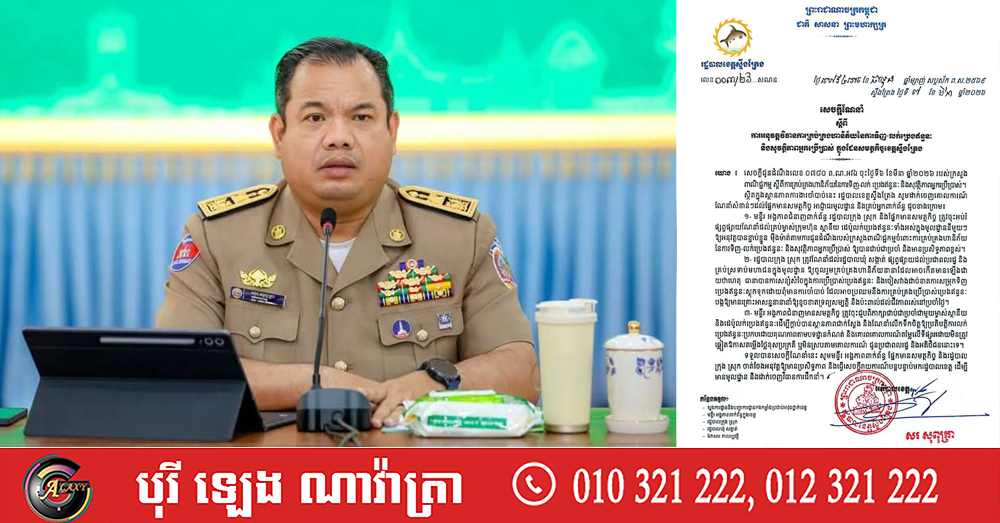 ទទួលបានសេចក្តីណែនាំនេះ សូមមន្ទីរ អង្គភាពពាក់ព័ន្ធ ផ្នែកមានសមត្ថកិច្ច និងរដ្ឋបាល ក្រុង ស្រុក ចាត់ចែងអនុវត្តឱ្យមានប្រសិទ្ធភាព និងធ្វើសេចក្តីរាយការណ៍បន្តបន្ទាប់មករដ្ឋបាលខេត្ត ដើម្បី មានមូលដ្ឋាន និងដាក់ចេញវិធានការដឹកនាំ៕