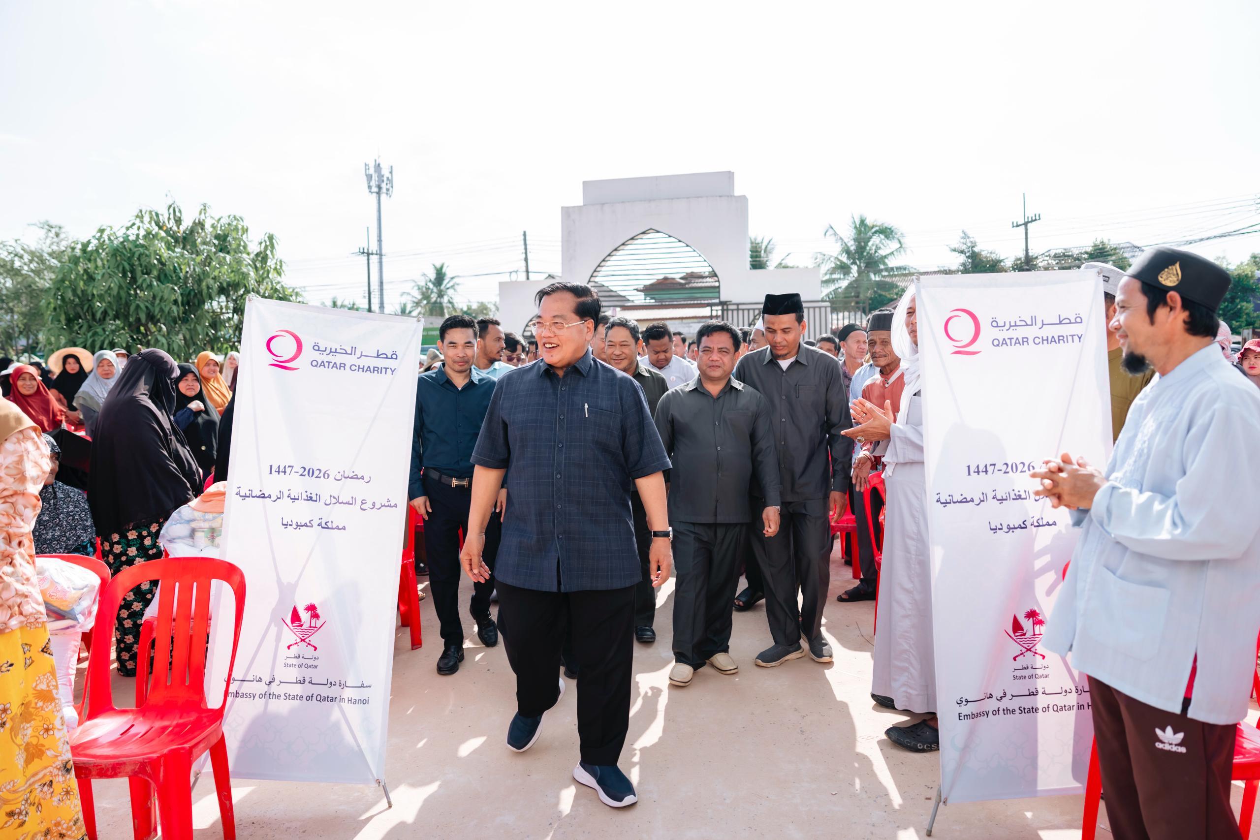 ក្នុងឱកាសនោះ ទេសរដ្ឋមន្ត្រី បានថ្លែងថា អង្គការសប្បុរធម៌កាតា បានផ្តល់ជំនួយកញ្ចប់អាហារស្រាយបួសជូនសហគមន៍ឥស្លាមកម្ពុជា តាមរយៈអង្គការ CMDF ក្នុងរយៈពេល២ឆ្នាំចុងក្រោយនេះ ដោយឆ្នាំនេះមានចំនួន១០០០កញ្ចប់ និងមានក្រសួងគរុភ័ណ្ឌសាសនា និងកិច្ចការឥស្លាមកាតា (AWQAF) បានផ្តល់ជូន ចំនួន១៥០០កញ្ចប់ ដើម្បីចែកជូនប្រជាពលរដ្ឋក្នុងខែបួសរ៉ាម៉ាឌនផងដែរ។