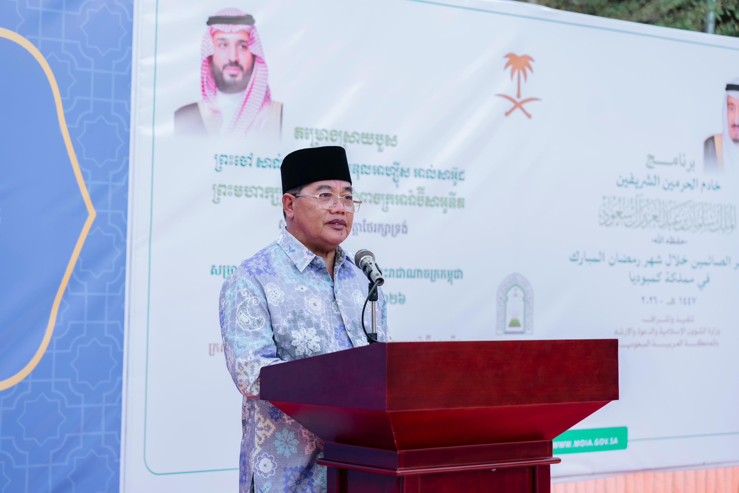 ទេសរដ្ឋមន្ត្រី បានសម្តែងនូវការដឹងគុណយ៉ាងជ្រាលជ្រៅបំផុត ថ្វាយចំពោះ ព្រះចៅ សាល់ម៉ាន ពិនអាប់ឌុលអាហ្សុីស អាល់សាអ៊ូដ ព្រះមហាក្សត្រនៃព្រះរាជាណាចក្រអារ៉ាប៊ីសាអូឌីត ដែលបានថ្វាយព្រះរាជអំណោយអាហារស្រាយបួសដល់សាសនិកឥស្លាមចំនួន១,២០០នាក់ នៅខេត្តកំពង់ឆ្នាំងនាពេលនេះ ដែលជាសក្ខីភាពនៃចំណងសាមគ្គីភាពដ៏រឹងមាំ និងការយកចិត្តទុកដាក់យ៉ាងកក់ក្តៅបំផុតពីសំណាក់ថ្នាក់ដឹកនាំអារ៉ាប៊ីសាអូឌីត មកកាន់បងប្អូនសាសនិកឥស្លាមកម្ពុជា ក្នុងនាមជាគ្រួសារឥស្លាមតែមួយ។
