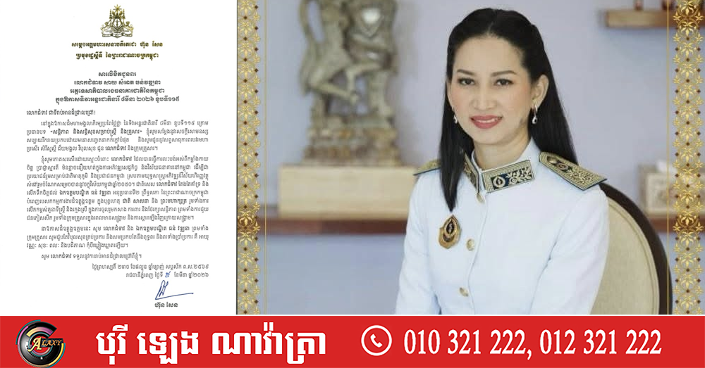 សម្តេចតេជោ ហ៊ុន សែន ប្រមុខរដ្ឋស្តីទី ផ្ញើសារលិខិតជូនពរ លោកជំទាវ សាយ សំអាត ធន់វឌ្ឍនា ក្នុងឱកាសប្រារព្ធខួបលើកទី ១១៥ ទិវាអន្តរជាតិនារី ៨មីនា ឆ្នាំ២០២៦