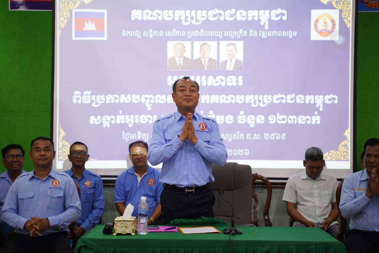 (ភ្នំពេញ)៖ លោក ហែម វុទ្ធី សមាជិកអចិន្រ្ដៃយ៍ អនុប្រធានក្រុមការងារគណបក្សចុះមូលដ្ឋានក្រុង និងជាប្រធានក្រុមការងារគណបក្សចុះមូលដ្ឋានសង្កាត់ អូរចារ នាថ្ងៃទី៨ ខែមីនា ឆ្នាំ២០២៦ បានអញ្ជើញជាអធិបតីក្នុងពិធីប្រកាសបញ្ចូលជាសមាជិកគណបក្សប្រជាជនកម្ពុជា សង្កាត់អូរចារ សរុបចំនួន ១២៣នាក់ របស់ក្រុមការងារគណបក្សចុះមូលដ្ឋានសង្កាត់ អូរចារ ក្រុងបាត់ដំបង ដែលប្រព្រឹត្ដនៅក្នុងបរិវេន គណបក្សក្រុងបាត់ដំបង។