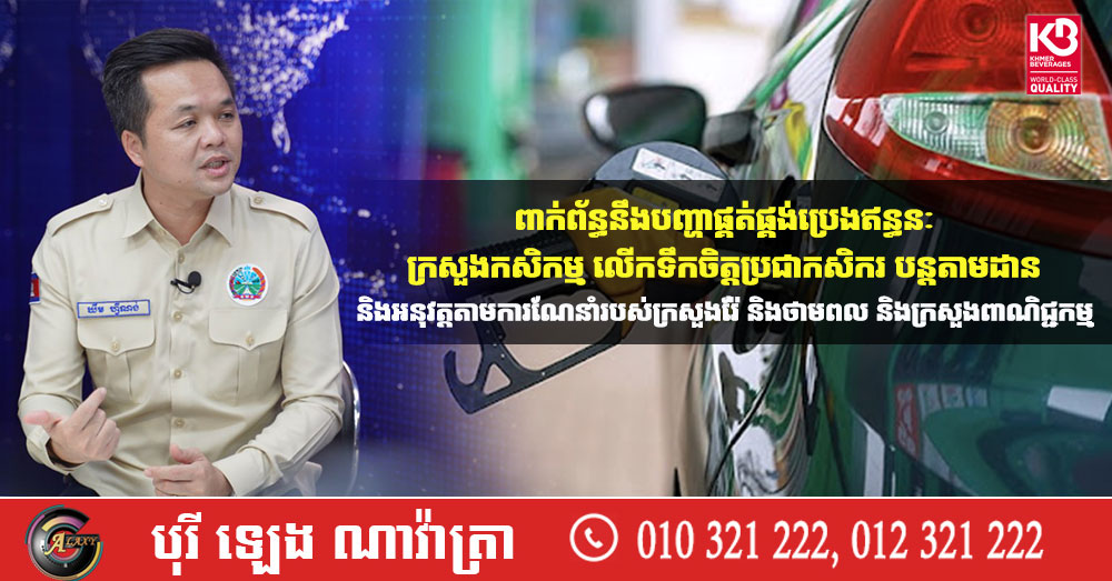 ពាក់ព័ន្ធនឹងបញ្ហាផ្គត់ផ្គង់ប្រេងឥន្ធនៈ ក្រសួងកសិកម្ម លើកទឹកចិត្តប្រជាកសិករ បន្តតាមដាន និងអនុវត្តតាមការណែនាំរបស់ក្រសួងរ៉ែ និងថាមពល និងក្រសួងពាណិជ្ជកម្ម