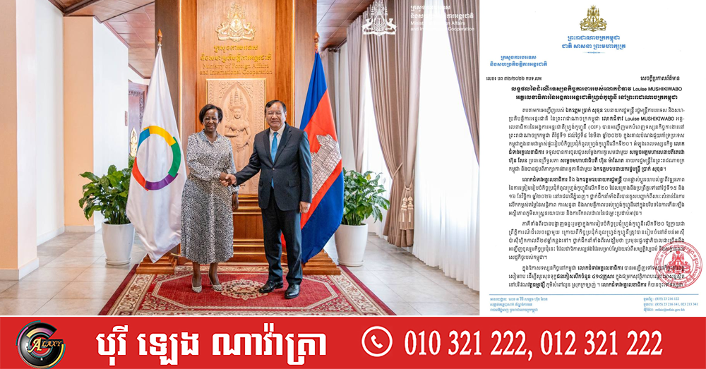 សូមជម្រាបថា លោកស្រី Louise MUSHIKIWABO អគ្គលេខាធិការនៃអង្គការអន្តរជាតិហ្វ្រង់កូហ្វូនី (OIF) បានមកបំពេញទស្សនកិច្ចការងារនៅកម្ពុជា កាលពីថ្ងៃទី១ ដល់ថ្ងៃទី៤ ខែមីនា ឆ្នាំ២០២៦ ក្នុងគោលបំណងជួយគាំទ្រប្រទេសកម្ពុជាក្នុងនាមជាម្ចាស់ផ្ទះរៀបចំកិច្ចប្រជុំកំពូលហ្វ្រង់កូហ្វូនីលើកទី២០។