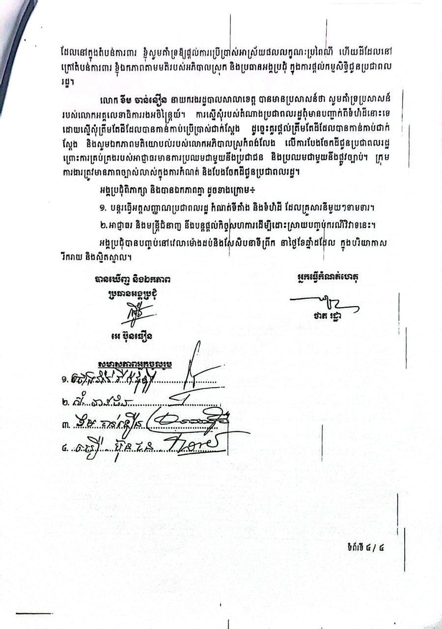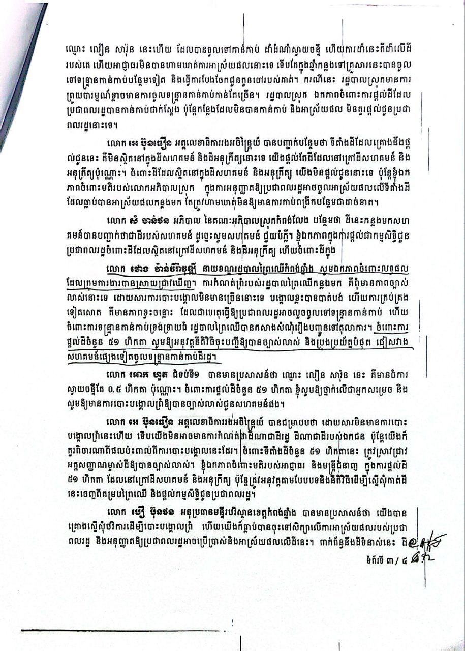 ករណីនេះអាជ្ញាធរស្រុក បានដោះស្រាយ និងសម្របសម្រួលជាច្រើនលើកច្រើនសារនៅតែមិនអាចដោះស្រាយបាន ដោយធ្វើឲ្យពួកគាត់ខកខានមិនបានចូលអាស្រ័យផលជាយូរឆ្នាំកន្លងមក ទើបពួកគាត់សម្រេចចិត្តស្នើសុំឲ្យថ្នាក់ដឹកនាំខេត្ត និងក្រសួងពាក់ព័ន្ធជួយដោះស្រាយ។
