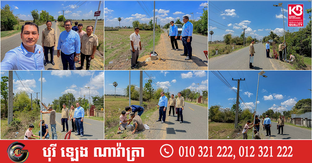(ខេត្តតាកែវ)៖ លោក កង អាណាន់ អភិបាលក្រុងដូនកែវ គ្រោងរៀបចំដំឡើងអំពូលសូឡា ដើរដោយថាមពលព្រះអាទិត្យ (Solar Light) ជាង ៣០០កន្លែង នៅបណ្ដោយផ្លូវឆ្លងកាត់ភូមិសាស្រ្តស្ពានចុងថ្នល់ រហូតដល់វត្តធន់មន់ ដែលមានប្រវែងប្រមាណជិត ៧,០០០ ម៉ែត្រ ស្ថិតនៅក្នុងសង្កាត់បារាយណ៍។