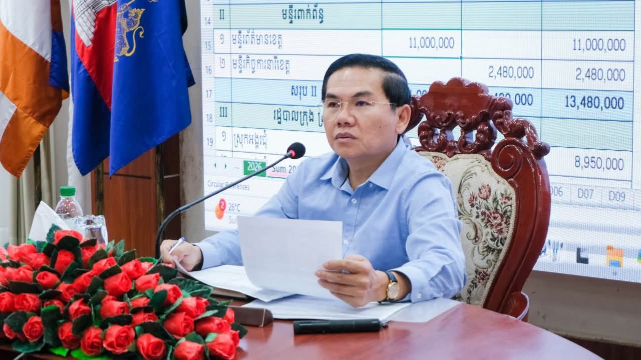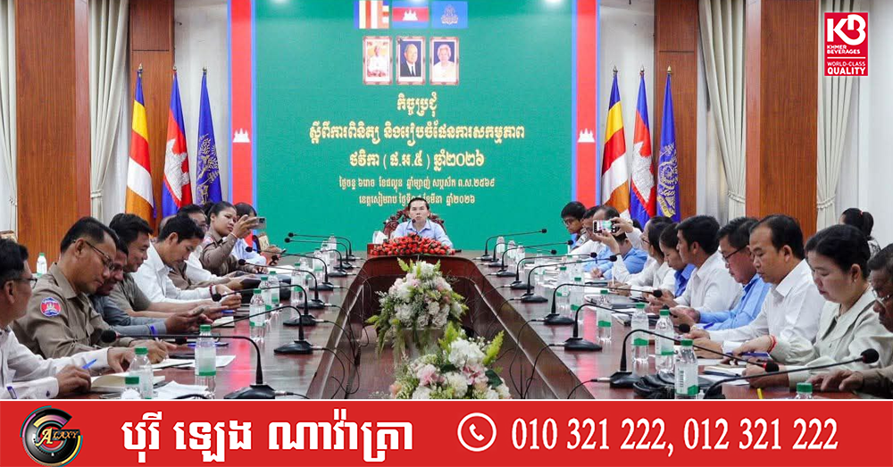 (សៀមរាប)៖ រដ្ឋបាលខេត្តសៀមរាប នៅថ្ងៃទី៩ ខែមីនា ឆ្នាំ២០២៦នេះ បានបើកកិច្ចប្រជុំពិនិត្យ និងរៀបចំផែនការសកម្មភាព និងថវិកា ផែនការអនុវត្តរយៈពេល៥ឆ្នាំ (ផអ៥) ឆ្នាំ២០២៦ និងពិនិត្យអំពីវឌ្ឍនភាព បញ្ហាប្រឈមក្នុងការអនុវត្តមុខងារដែលរាជរដ្ឋាភិបាលបានផ្ទេរជូនដល់រដ្ឋបាល ក្រុង ស្រុក។