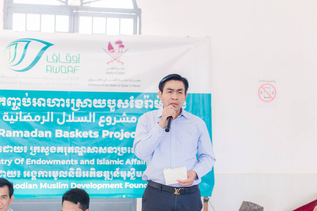 លោកបានសម្ដែងនូវការកោតសរសើរ និងថ្លែងអំណរគុណចំពោះអគ្គនាយកដ្ឋានគរុភណ្ឌ នៃក្រសួងគរុភណ្ឌសាសនា និងកិច្ចការឥស្លាមប្រទេសកាតា ដែលបានផ្តល់ជំនួយមនុស្សធម៌ដល់ប្រជាពលរដ្ឋមានជីវភាពខ្វះខាត នៅក្នុងសហគមន៍ឥស្លាមកម្ពុជា។