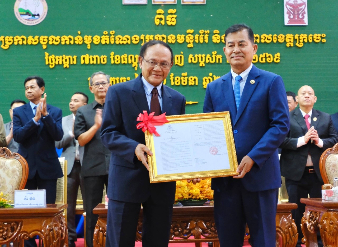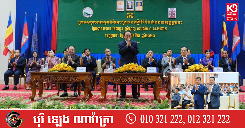 (ក្រចេះ)៖ លោក អ៉ិត ប្រាំង រដ្ឋលេខាធិការនៃក្រសួងរ៉ែ និងថាមពល និងលោក វ៉ា ថន អភិបាលខេត្តក្រចេះ នាព្រឹកថ្ងៃទី១០ ខែមីនា ឆ្នាំ២០២៦ បានអញ្ជើញប្រកាសតែងតែងថ្មីប្រធានមន្ទីររ៉ែ និងថាមពលខេត្តក្រចេះ ដោយលោក រ័ត្ន តុលា ជំនួសលោក សុខ គីរីរត្ន ត្រូវទៅទទួលភារកិច្ចថ្មីនៅក្រសួង។