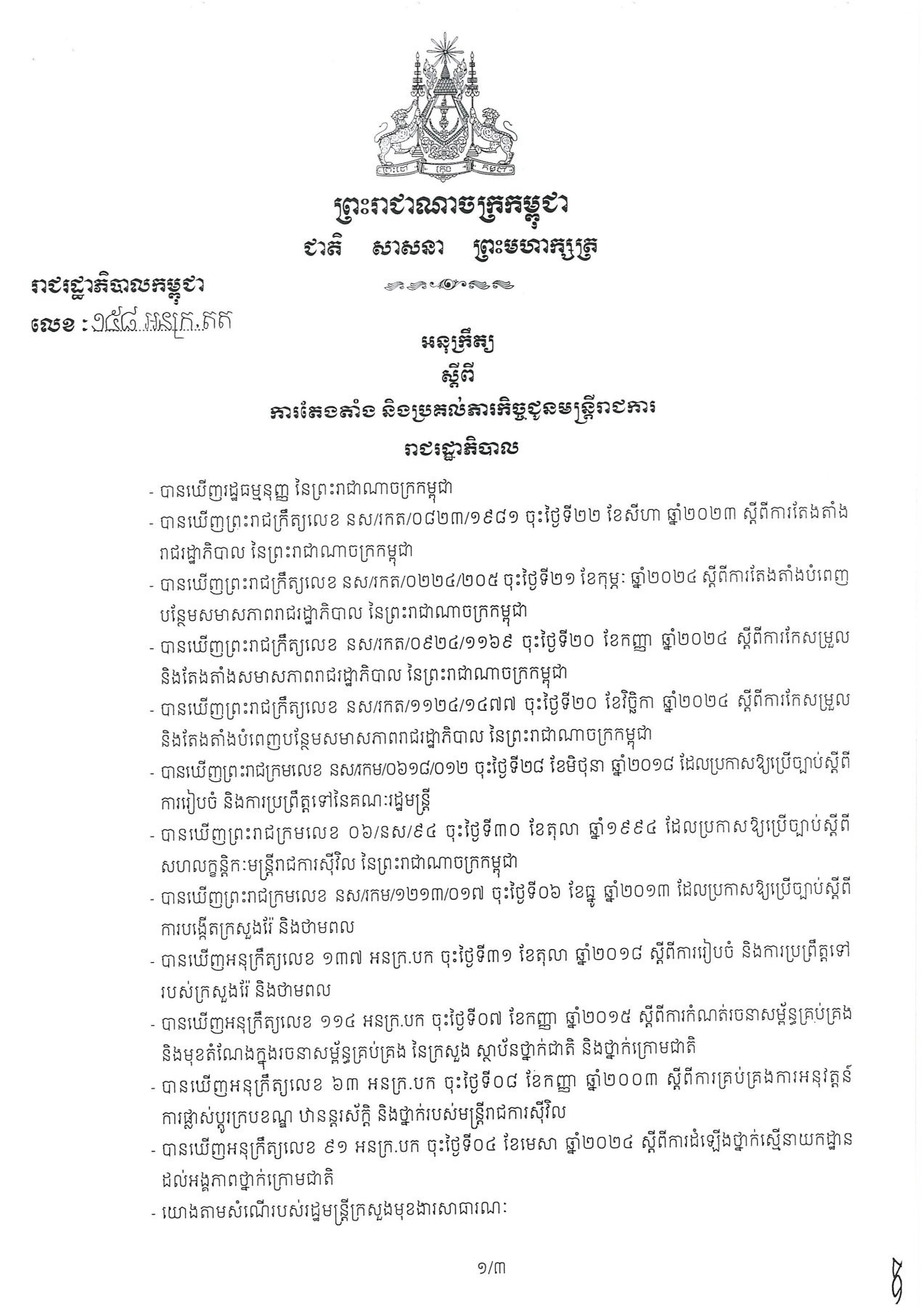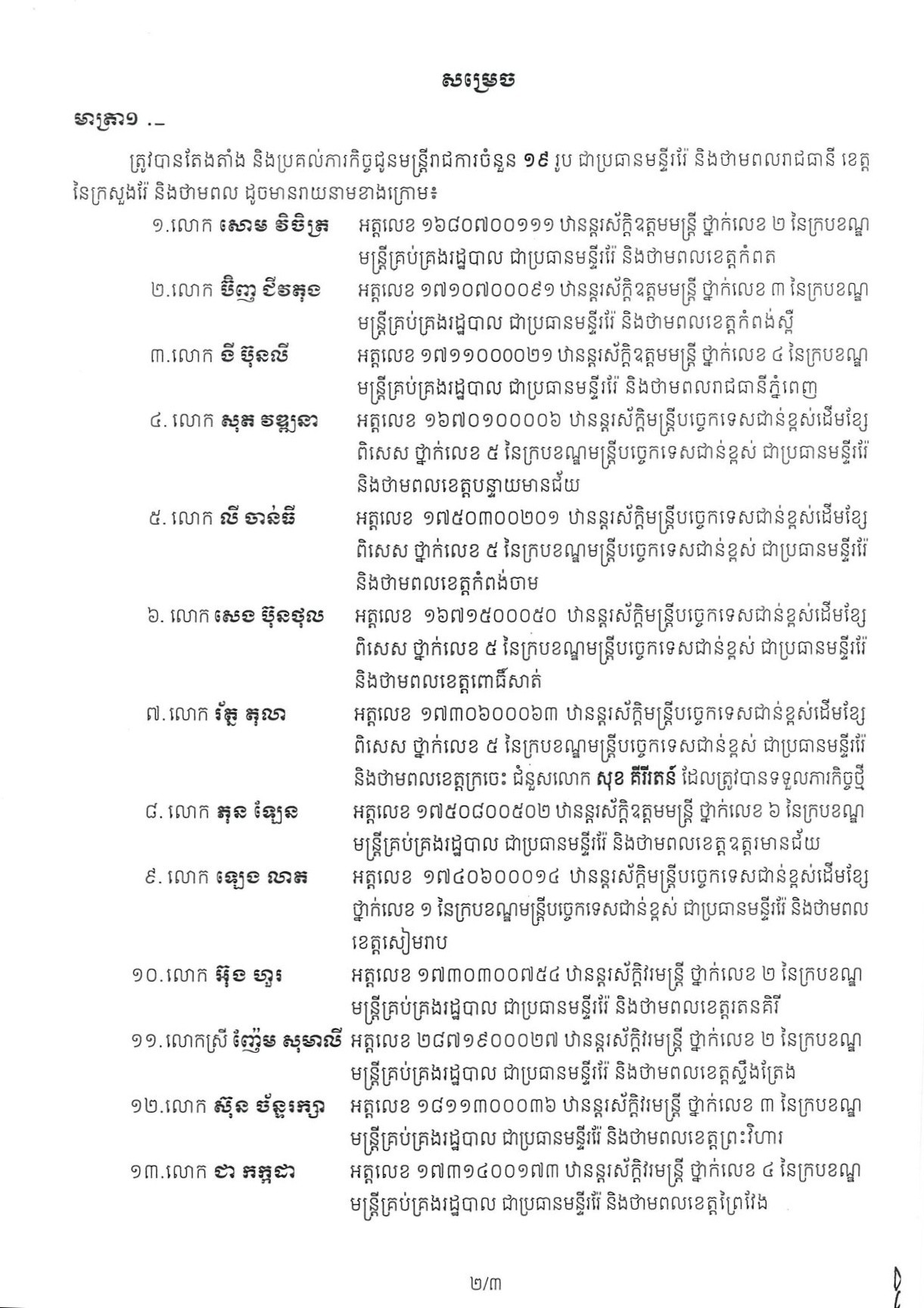 យោងតាមអនុក្រឹត្យរបស់រាជរដ្ឋាភិបាល លោក រ័ត្ន តុលា ត្រូវបានតែងតាំងជាប្រធានមន្ទីររ៉ែ និងថាមពលខេត្តក្រចេះ ជំនួសលោក សុខ គីរីរតន៍ ដែលត្រូវទទួលភារកិច្ចថ្មី។