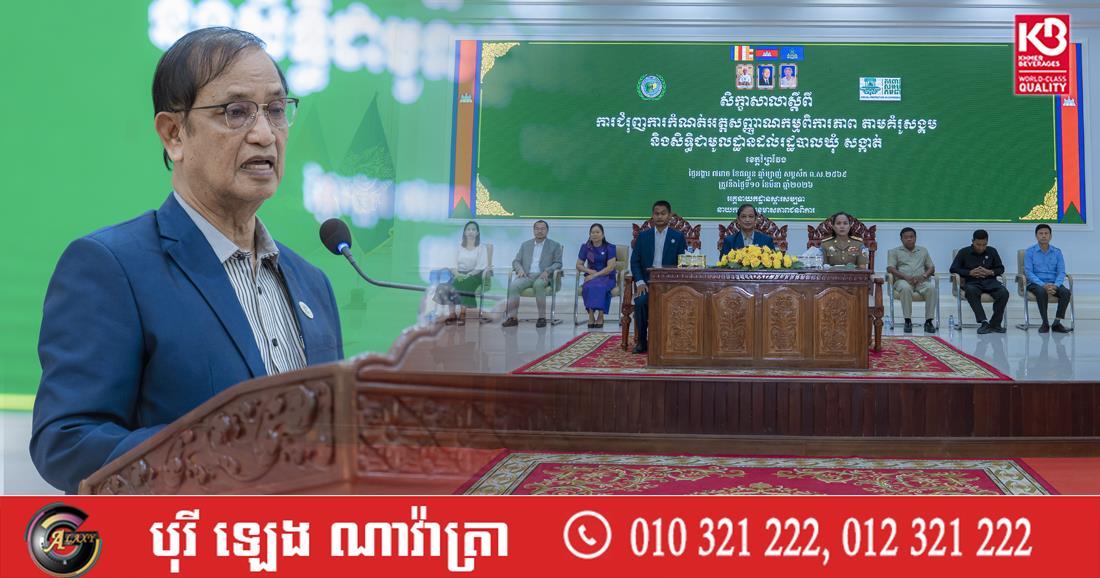(ព្រៃវែង)៖ ថ្ងៃអង្គារ ទី១០ ខែមីនា ឆ្នាំ២០២៦នេះ ដោយទទួលបានការអនុញ្ញាតពី លោករដ្ឋមន្រ្តី ជា សុមេធី រដ្ឋមន្ត្រីក្រសួងសង្គមកិច្ច អតីតយុទ្ធជន និងយុវនីតិសម្បទា លោក សែម សុខា រដ្ឋលេខាធិការ បានអញ្ជើញជាអធិបតីក្នុងសិក្ខាសាលាស្តីពី «ការជំរុញការកំណត់អត្តសញ្ញាណកម្មពិការភាព តាមគំរូសង្គម និងសិទ្ធិជាមូលដ្ឋានដល់រដ្ឋបាលឃុំ/សង្កាត់» ដែលមានការចូលរួមពី លោកអនុរដ្ឋលេខាធិការ លោកស្រីអភិបាលរងនៃគណៈអភិបាលខេត្តព្រៃវែង លោកស្រីអគ្គនាយករងស្តារសម្បទា ប្រធាន អនុប្រធាននាយកដ្ឋានសុខុមាលភាពជនពិការ ប្រធានមន្ទីរ ស.អ.យ. គ្រូបង្គោល មេឃុំ ចៅសង្កាត់ និងជនបង្គោលសរុបប្រមាណ ២៥០នាក់ នៅសាលប្រជុំសាលាខេត្តព្រៃវែង។